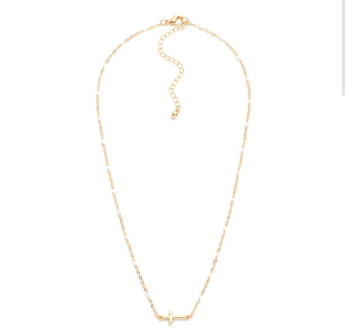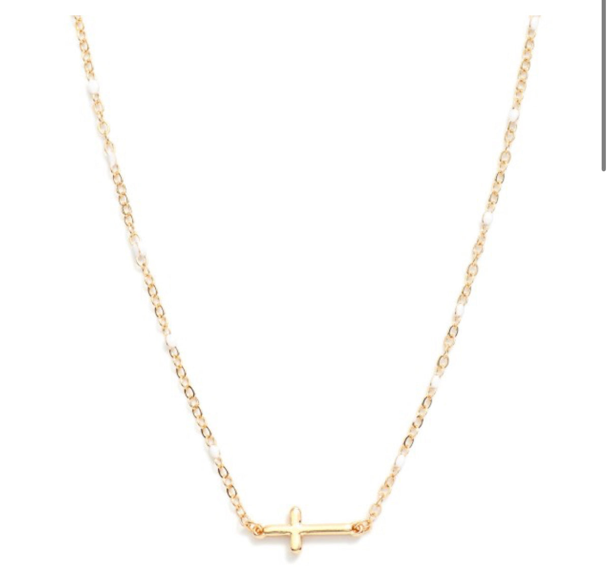 Chain Link Dainty East West Cross Necklace With Painted Link Detail