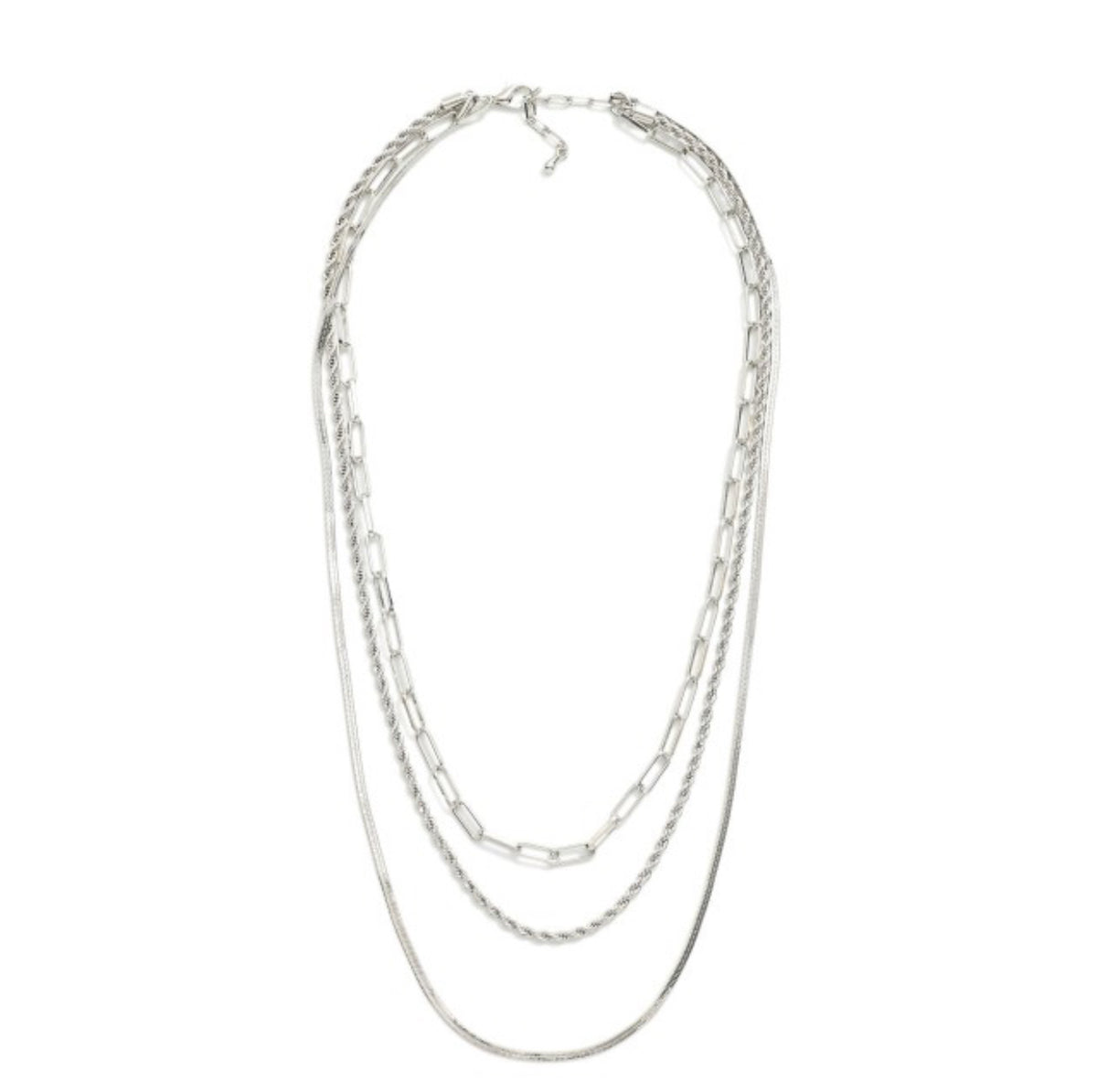 Layered Chain Link Necklace Featuring Herringbone, Twisted, & Paperclip Chains