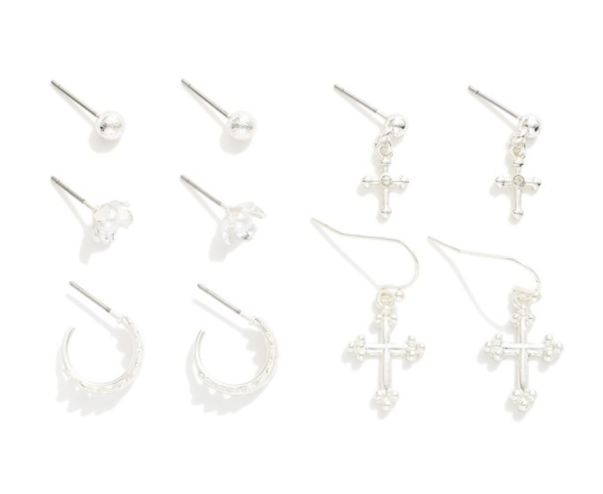Set Of Five Metal Tone Stud, Hoop, & Drop Earrings - Approximately .25 -.75" L