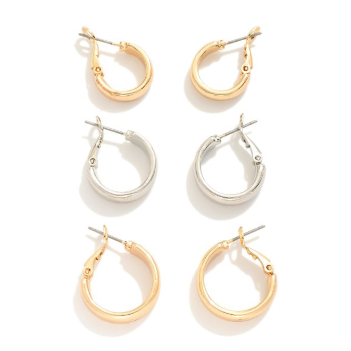 Set Of Three Metal Tone Hoop Earrings - Approximately .25" - .75" D