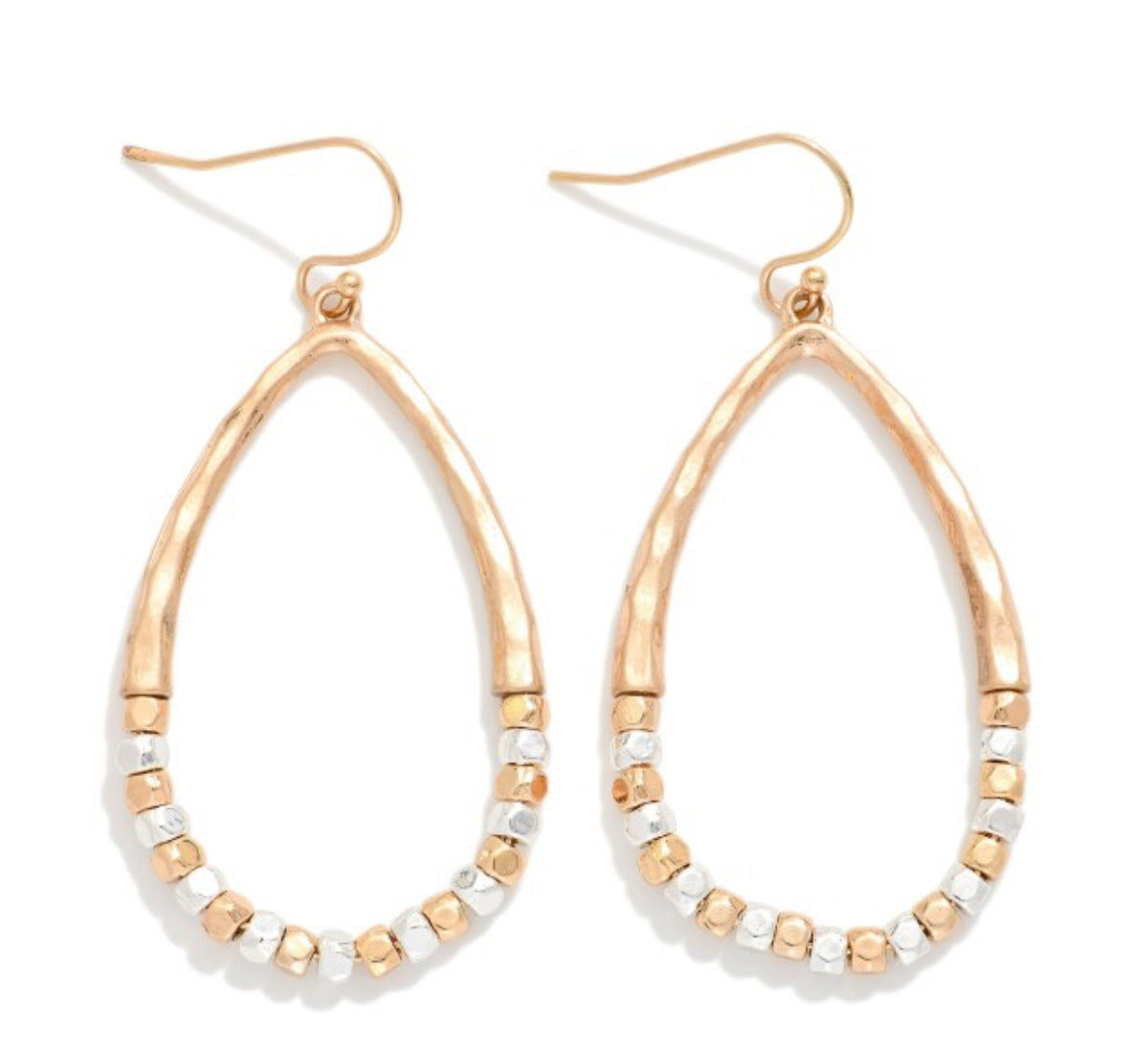 Hammered Metal Beaded Teardrop Drop Earrings