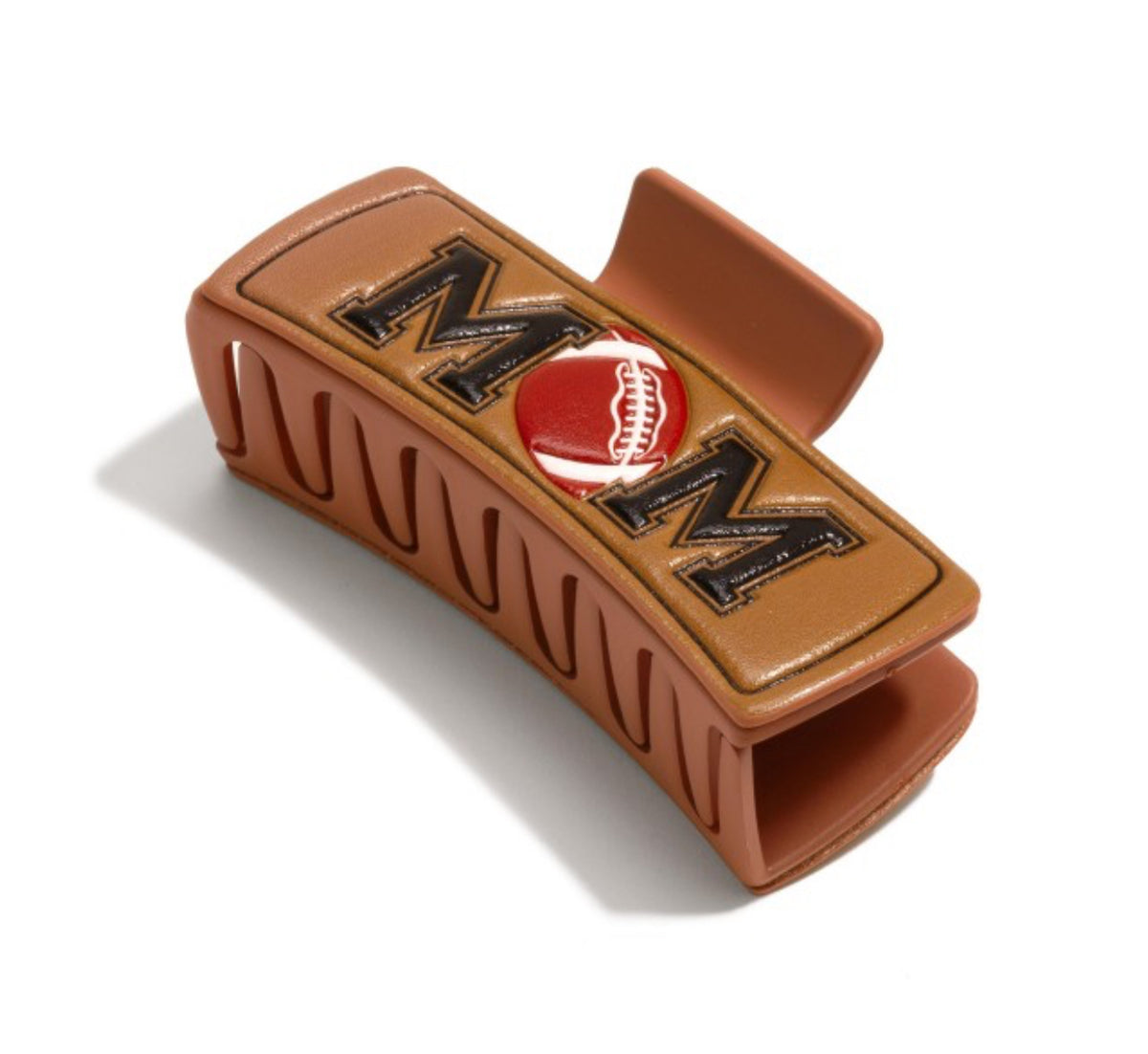 Leather Embossed Football Mom Hair Clip- Approximately 4" L