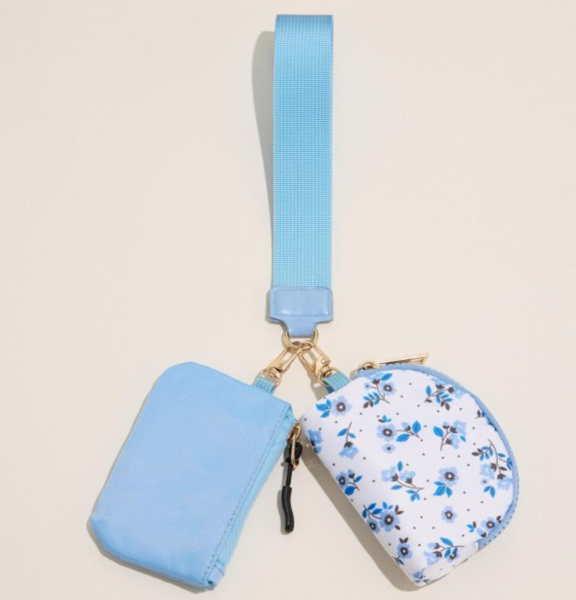 Solid & Petite Blue Flower Print Two Pouch Wristlet