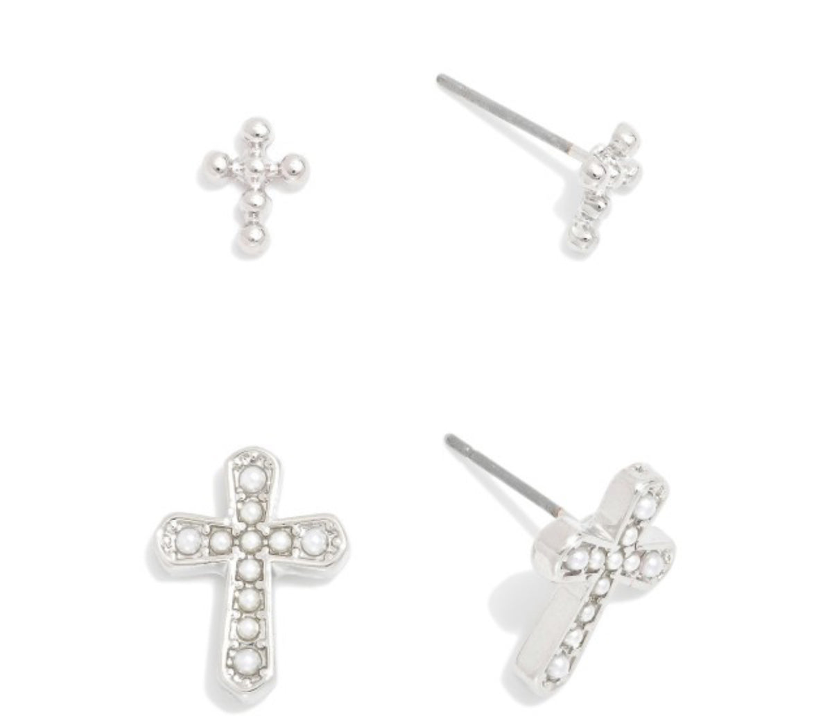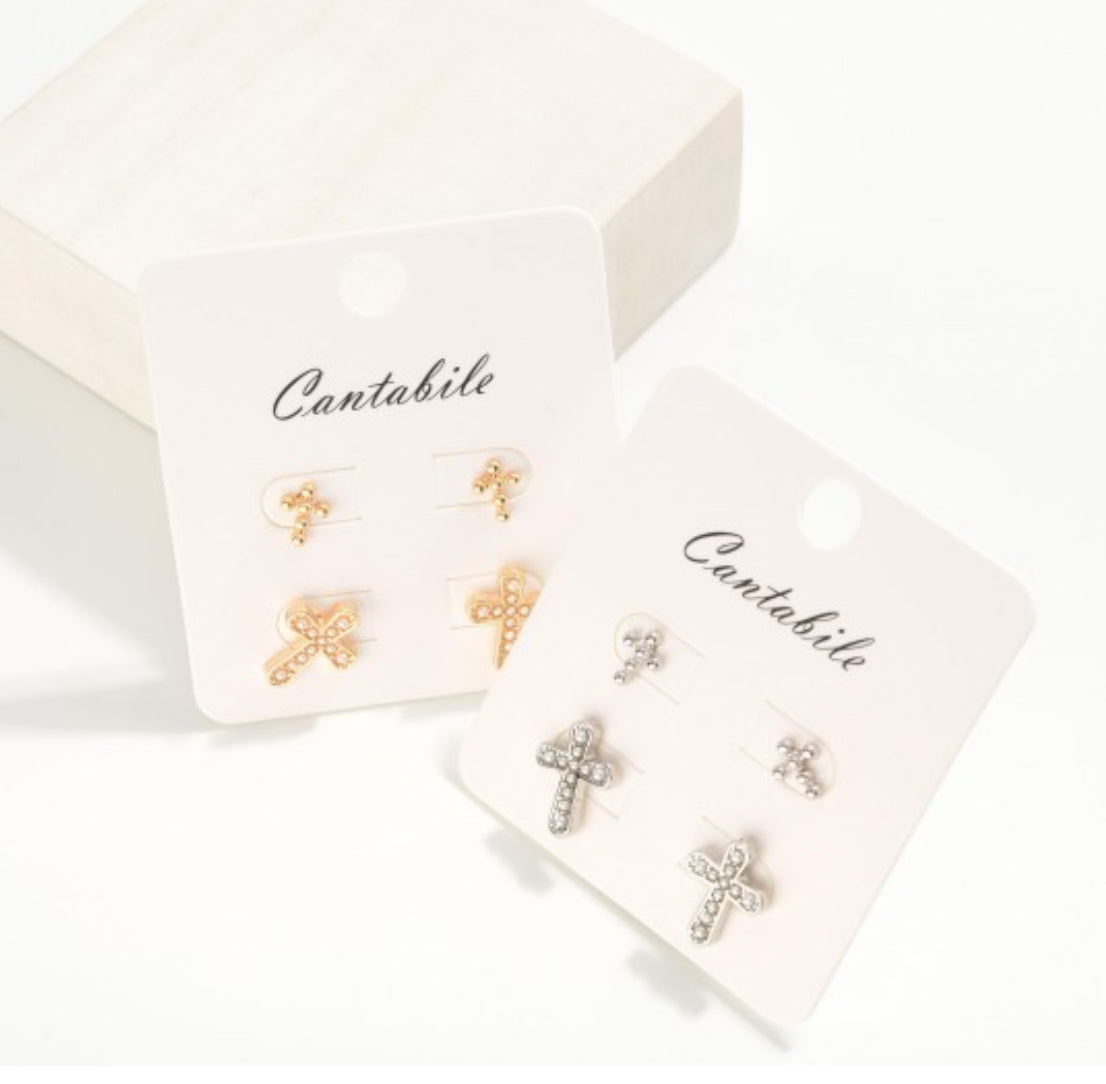 Set Of Two Metal Tone Earrings Featuring Pearl Studded Cross Earring