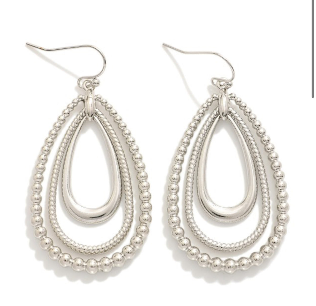 Linked Teardrop Drop Earrings Featuring Beaded Detail - Approximately 2"