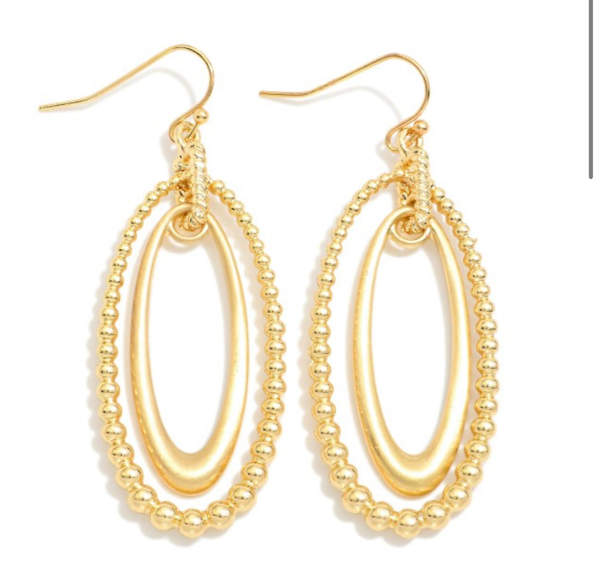 Nesting Textured Metal & Matte Metal Ovals Drop Earrings - Approximately 2" L