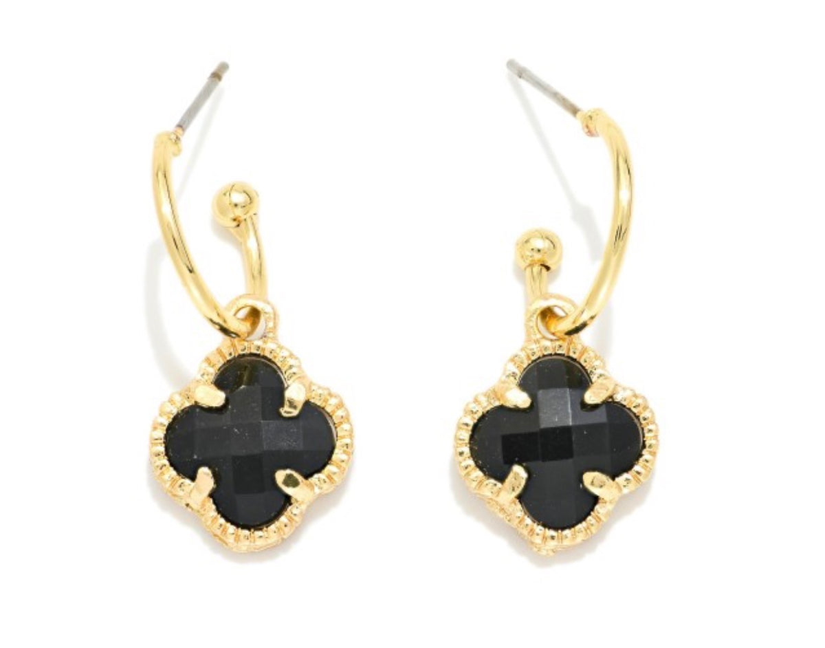 Metal Tone Half Hoop Earrings Featuring Glass Crystal Dangle Detail - Approximately 1.25" L
