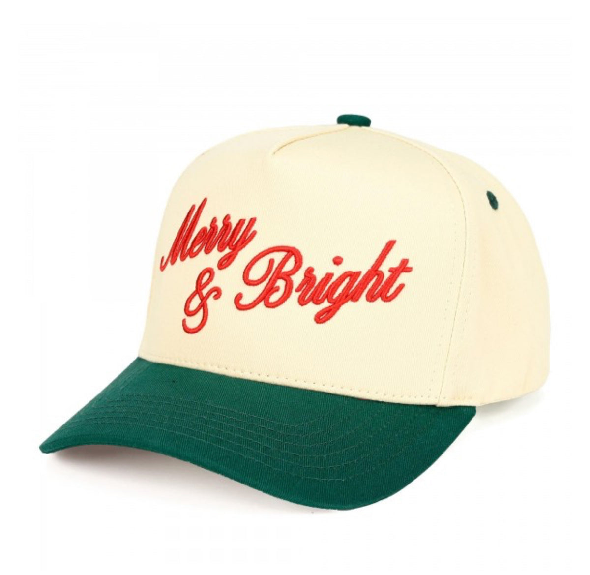 Two Tone Embroidered "Merry & Bright" Baseball Cap