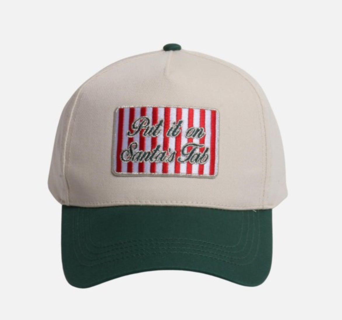 "Put It On Santa's Tab" Embroidered Striped Patch Two Tone Baseball Cap