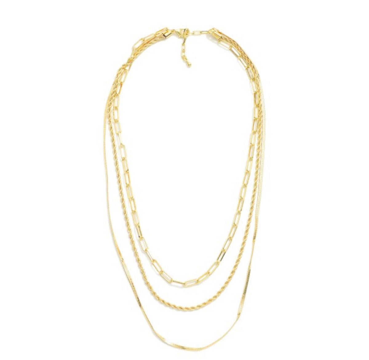 Layered Chain Link Necklace Featuring Herringbone, Twisted, & Paperclip Chains