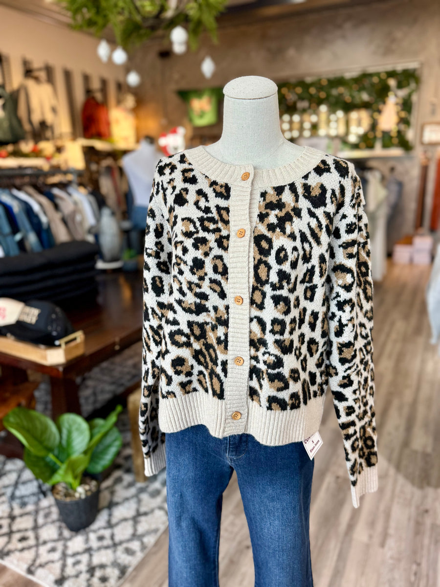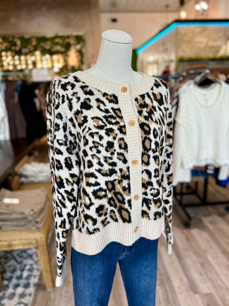 Effortlessly chic, our leopard or tan button up cardigan sweater combines style and comfort. With a true to size fit, stay cozy and on-trend.