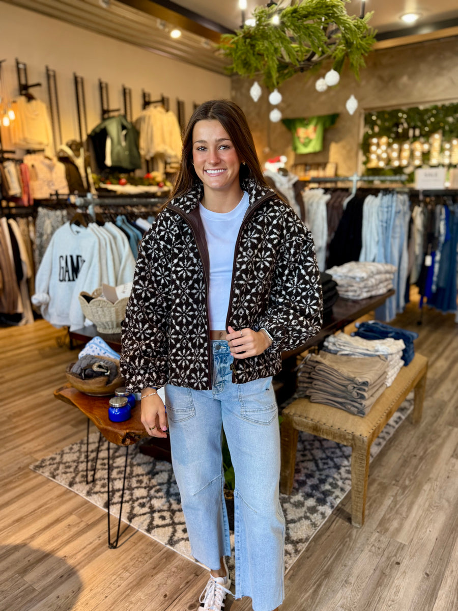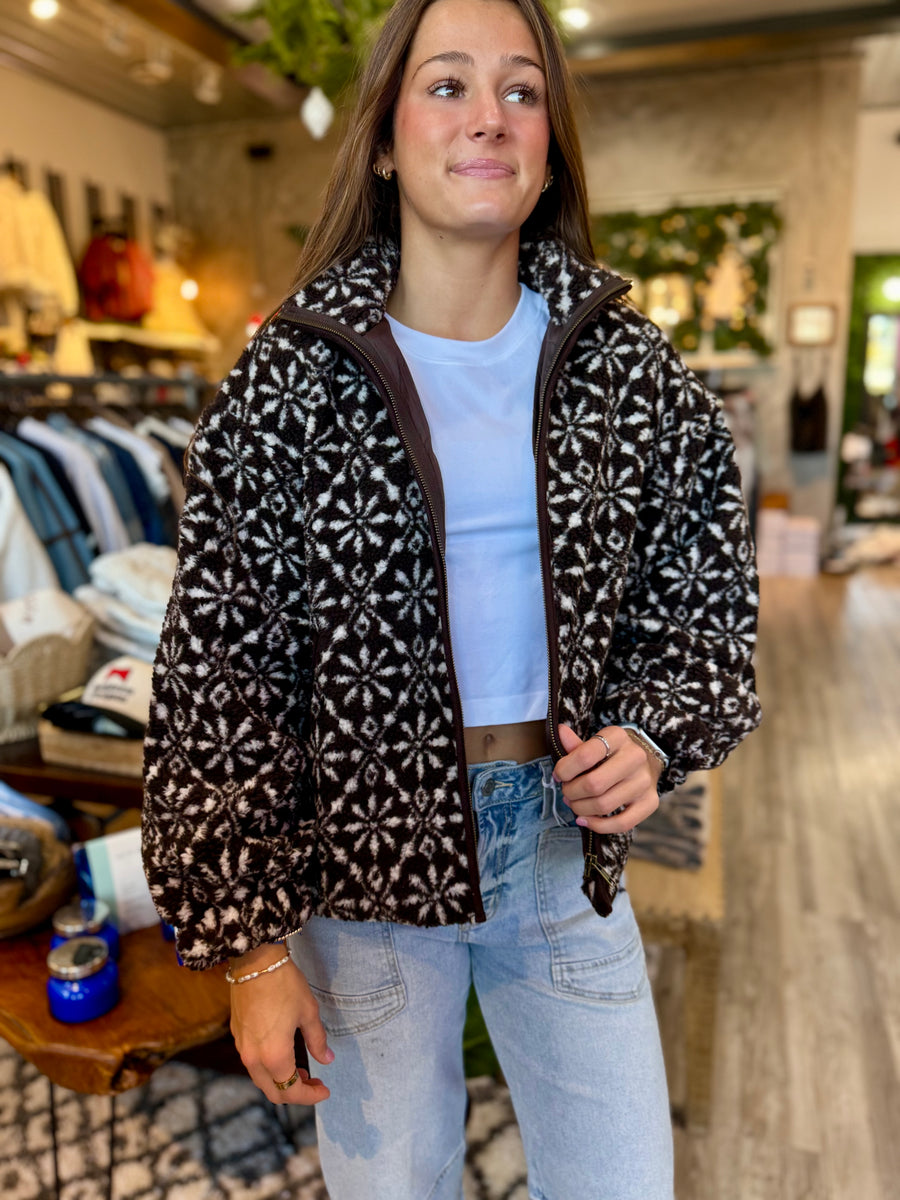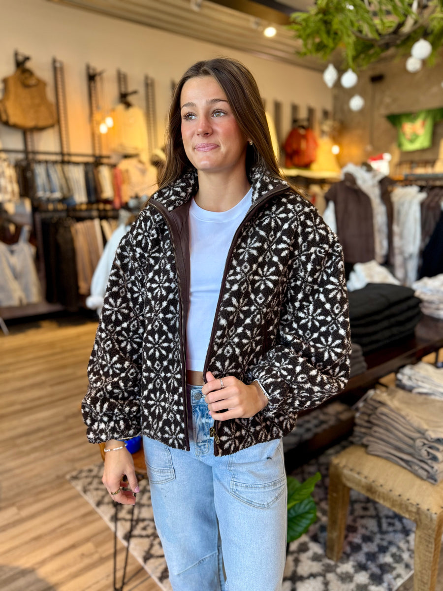 Stay warm and stylish with Fj1010, featuring a cozy brown Sherpa zip up design. Perfect for chilly days, this jacket will keep you comfortable and fashionable.