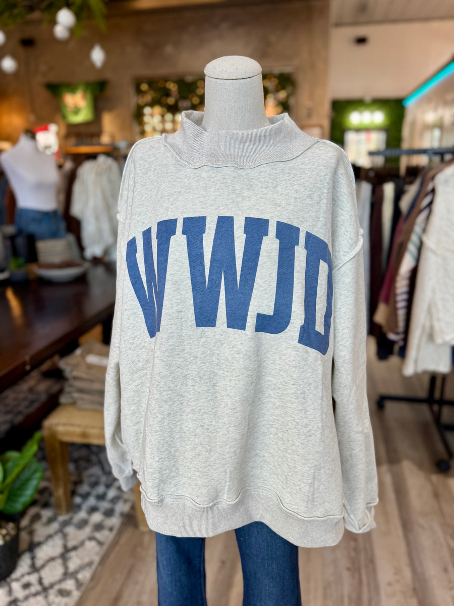Don't know what to do? Wear our Wwjd amen reversible mock neck sweatshirt and relax. With its loose fit and dual design, choose between WWJD or amen to express your faith.