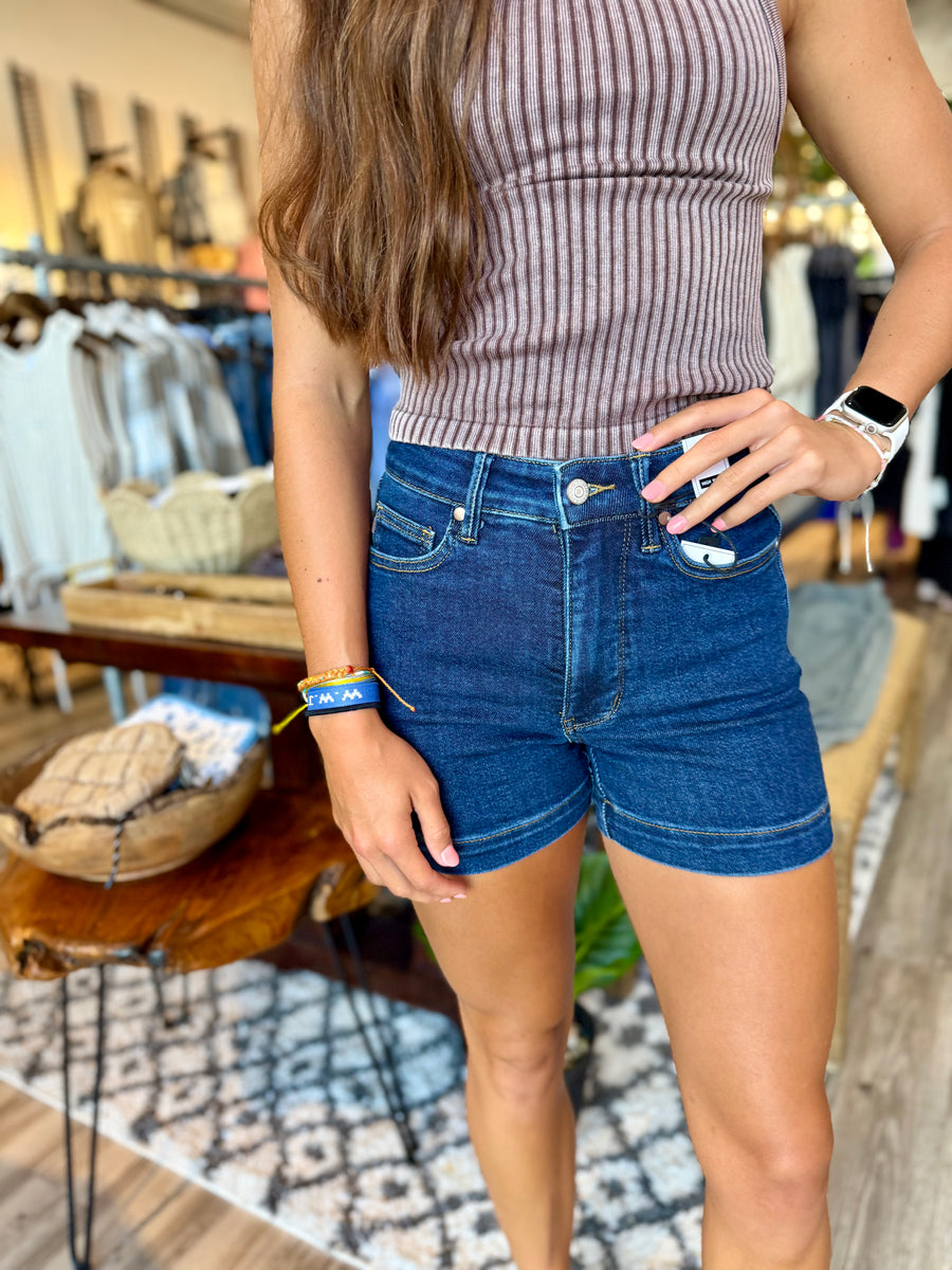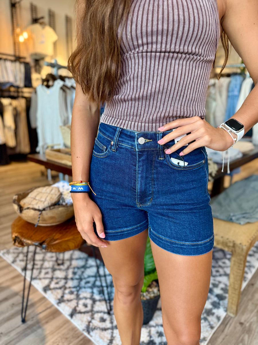 Get ready to rock these Judy blue shorts with a built-in tummy control for a flattering fit. The double waistband adds a unique touch and the super stretchy fabric ensures comfort all day long. With a 4 3/4" inseam, you'll stay cool and stylish all summer!
