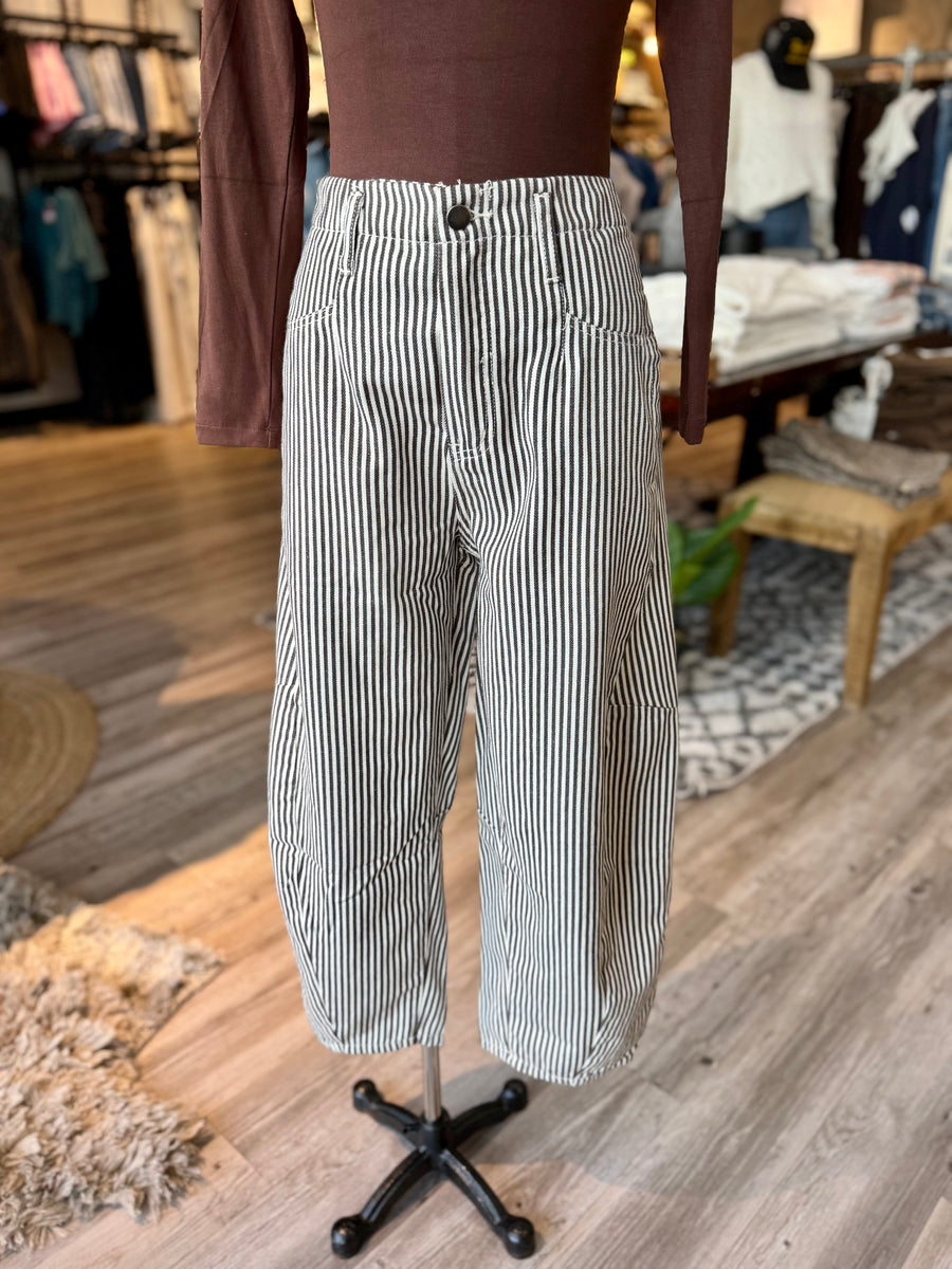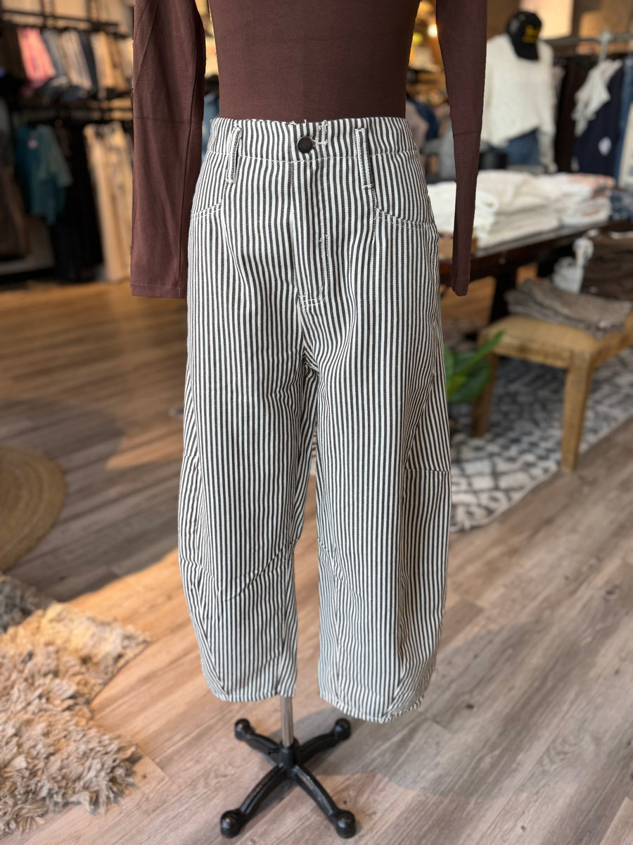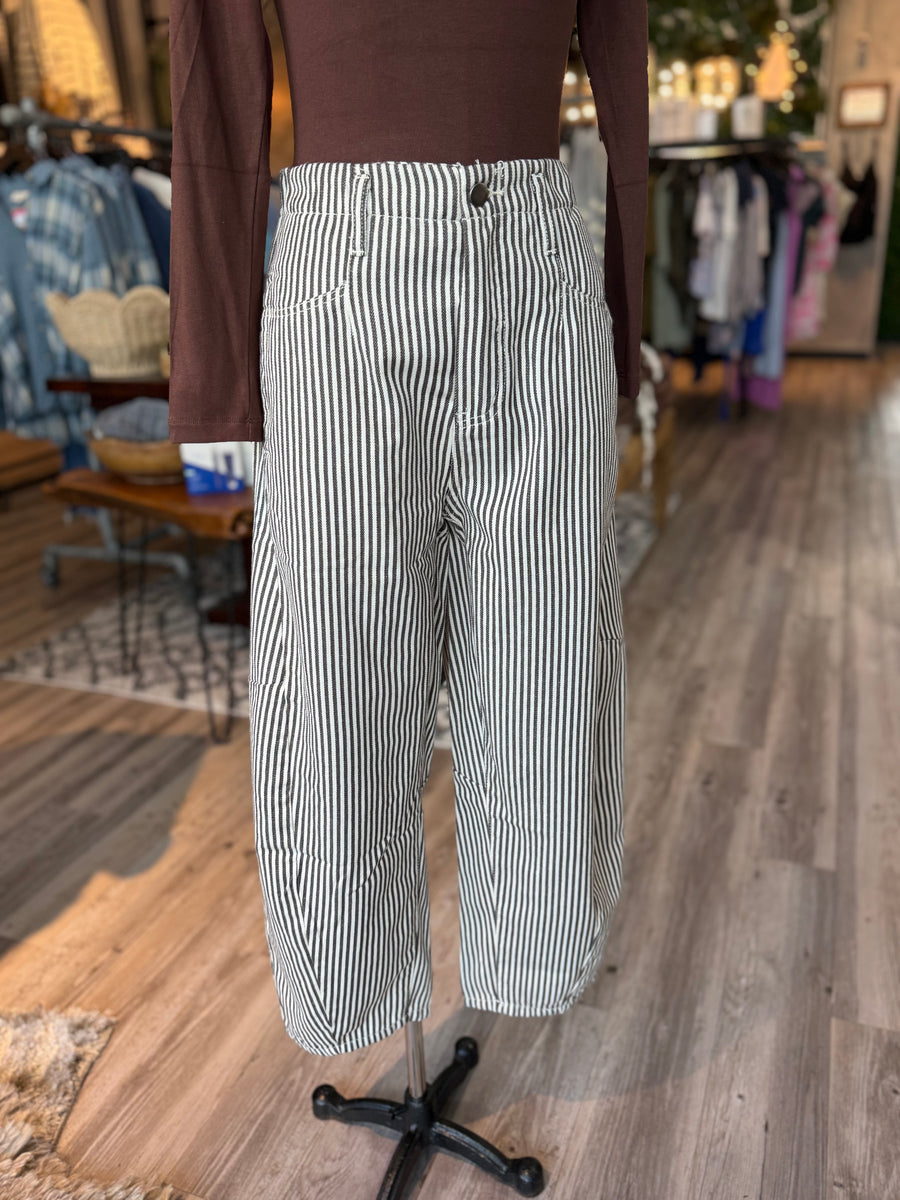 Looking for the perfect pair of jeans? Look no further than the brow stripe barrel jeans. Not only are they super soft, but they also have a stylish stripe design. Stay comfortable and fashionable with these jeans.
