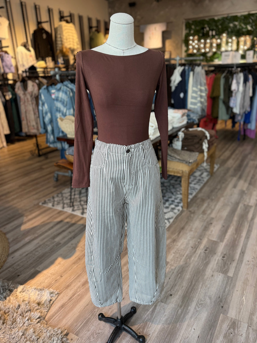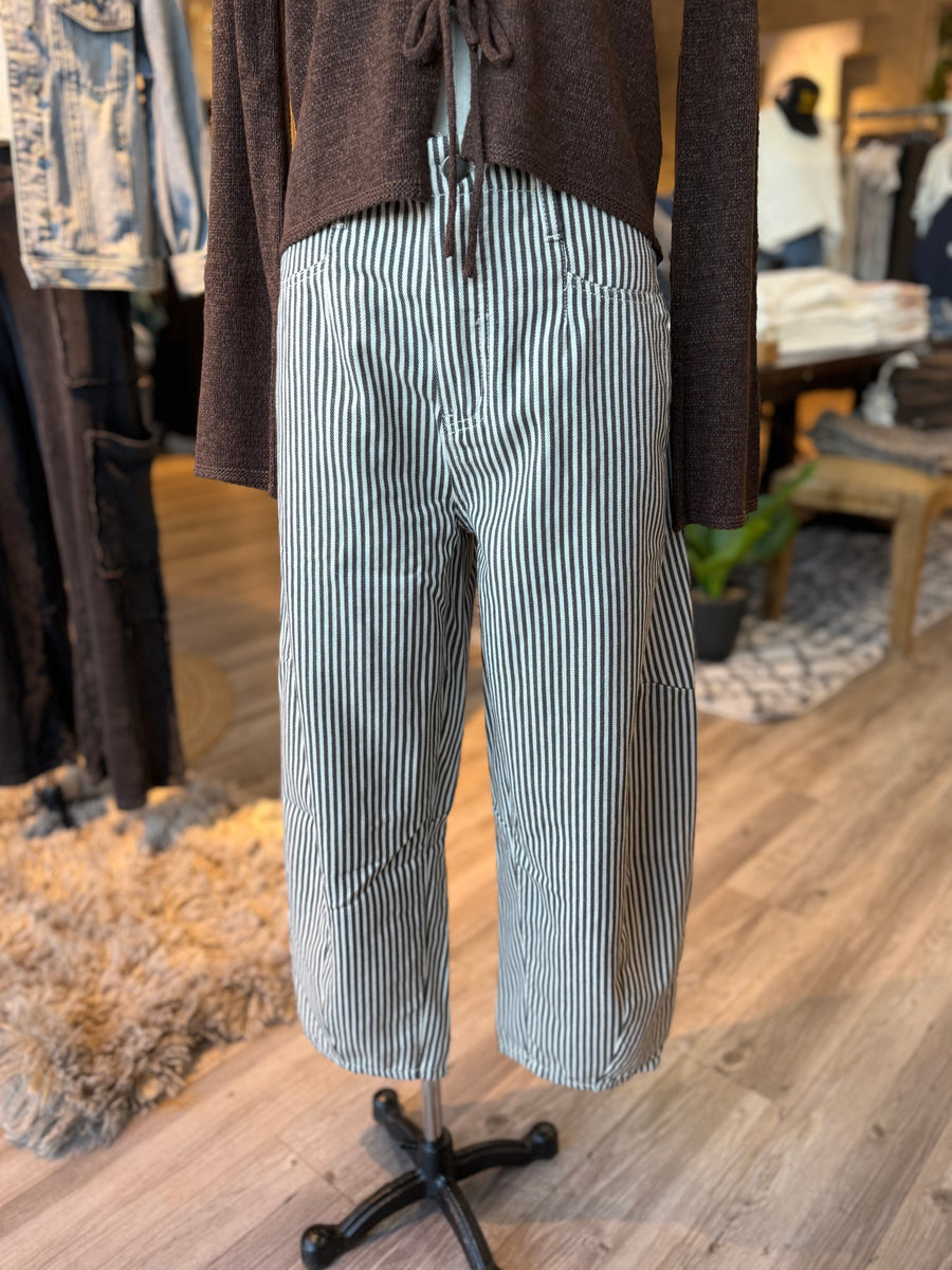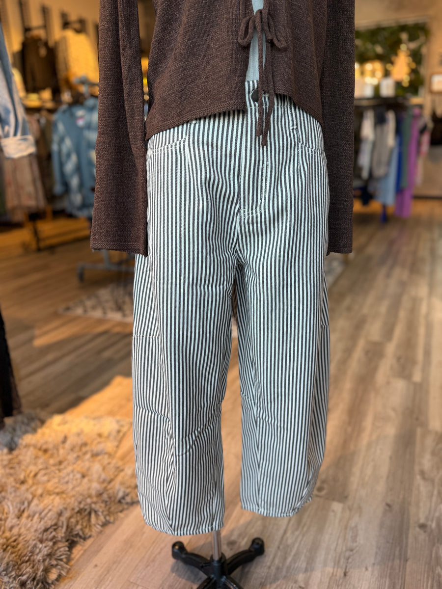 Looking for the perfect pair of jeans? Look no further than the brow stripe barrel jeans. Not only are they super soft, but they also have a stylish stripe design. Stay comfortable and fashionable with these jeans.