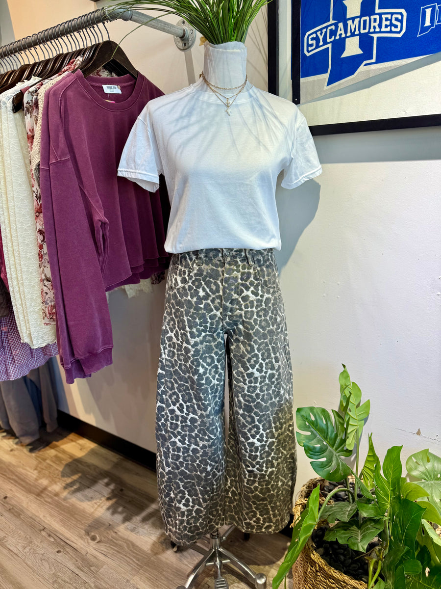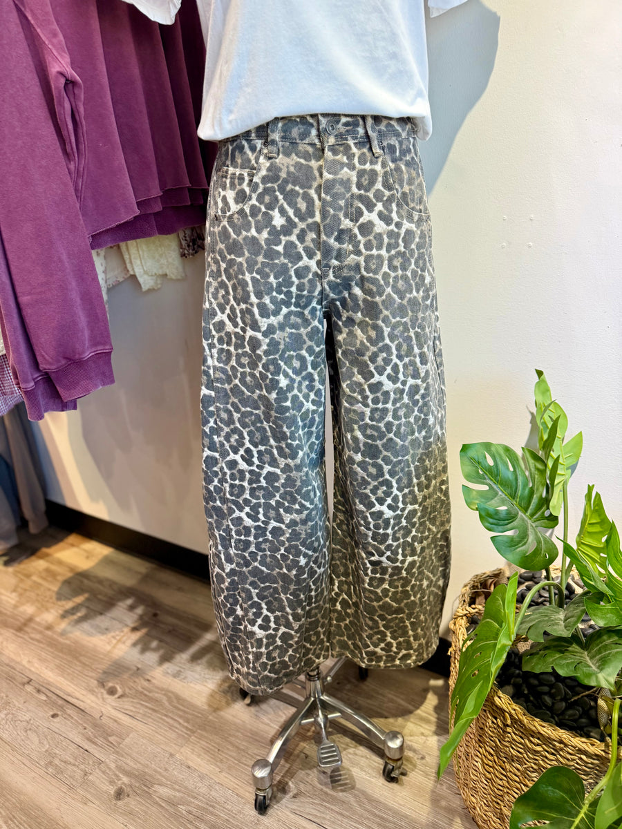 Upgrade your casual wardrobe with our 70891 leopard barrel jeans. The relaxed fit offers both style and comfort, making them perfect for any occasion."