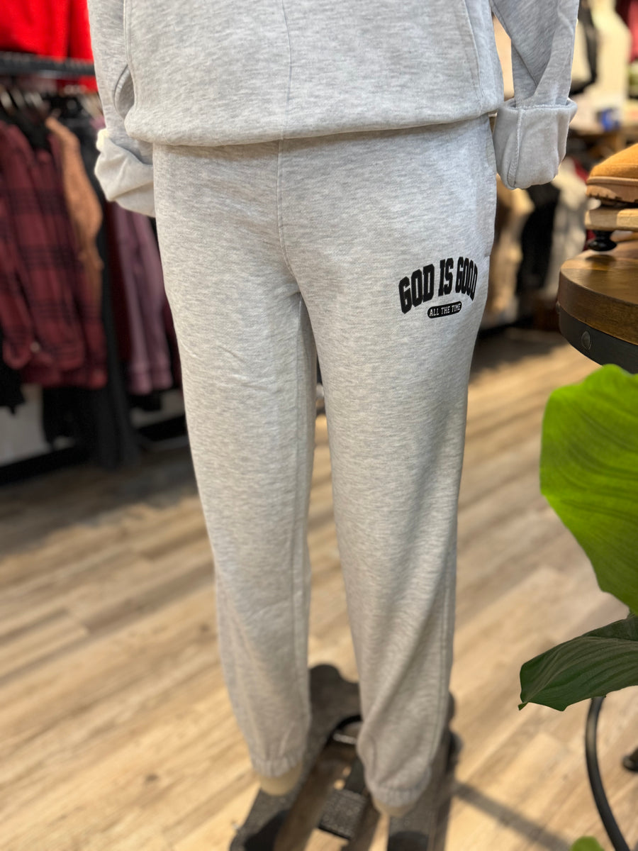 The Heather gray God is good sweatpants is perfect for staying cozy while spreading a positive message. With its super soft material, you can feel comfortable and inspired at the same time. Stay warm and share your faith with these stylish sweatpants.