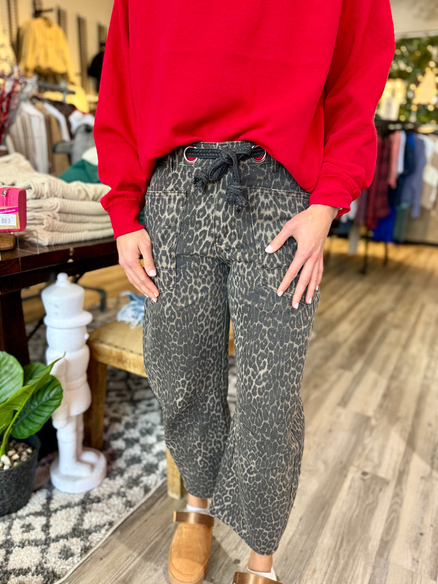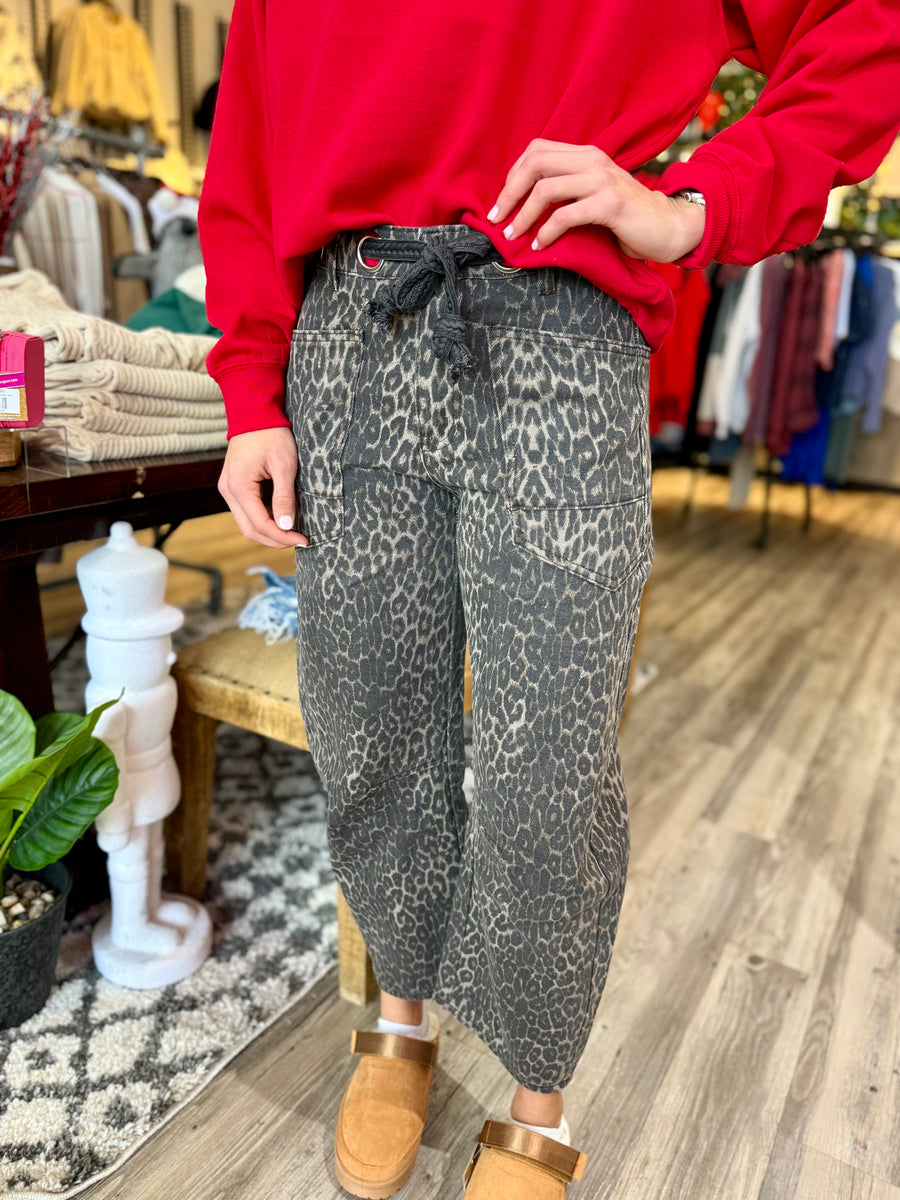 Effortlessly stylish and comfortable, our 72435 leopard barrel tie waist jeans are a must-have addition to your wardrobe. The trendy leopard print adds a touch of sophistication to any outfit, while the tie waist provides a flattering and adjustable fit. Elevate your fashion game with these versatile jeans.