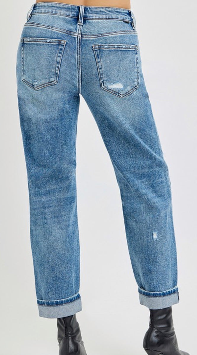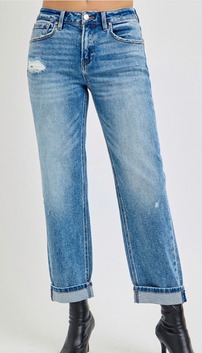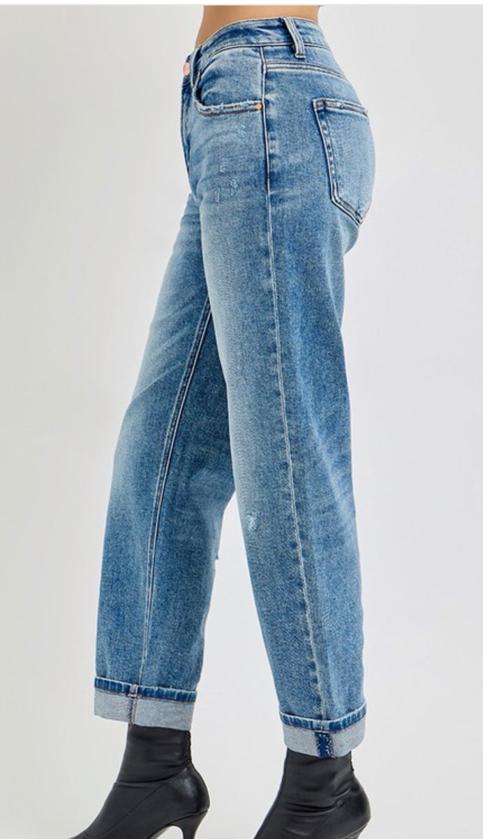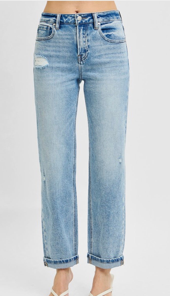 Elevate your casual style with the 21013 high rise ankle boyfriend distressed jeans. Available in light or medium wash, these jeans combine comfort and trendiness, offering a relaxed fit that flatters your silhouette while adding an edgy touch to any outfit. Perfect for everyday wear.