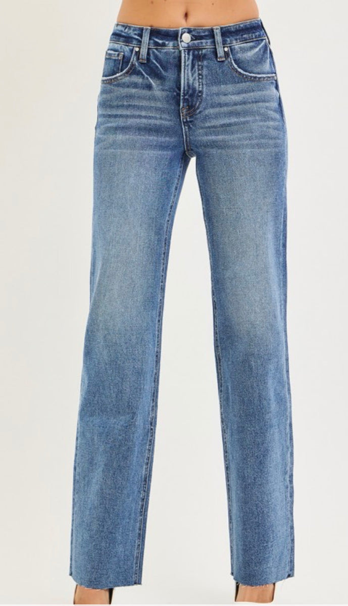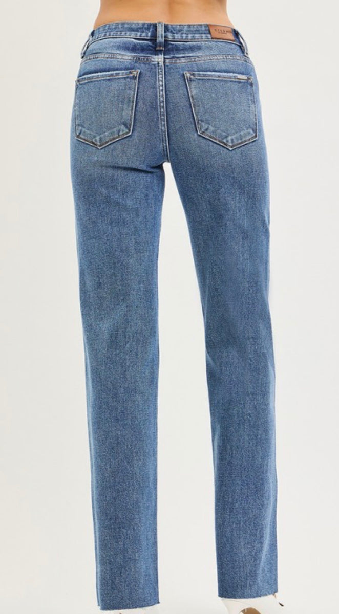 Experience comfort and style with the Risen dark tummy control jeans. Featuring a mid-rise design and 4-way stretch, these jeans provide a flattering fit and ease of movement. The 9 1/2” rise and 32 1/2” inseam ensure a sleek silhouette for any occasion.