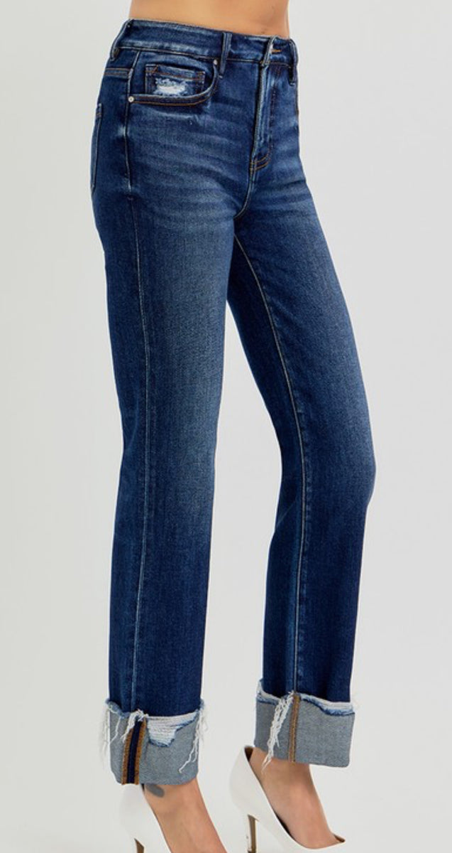 Elevate your style with 5877 - Risen tummy control high rise crop straight jeans. With a 125” rise and a stretch fit, these jeans hug your curves for a flattering silhouette. The cuffed hem adds a playful touch, while the 28.5” inseam (or 32" without cuff) elongates your legs. Upgrade your denim game today.