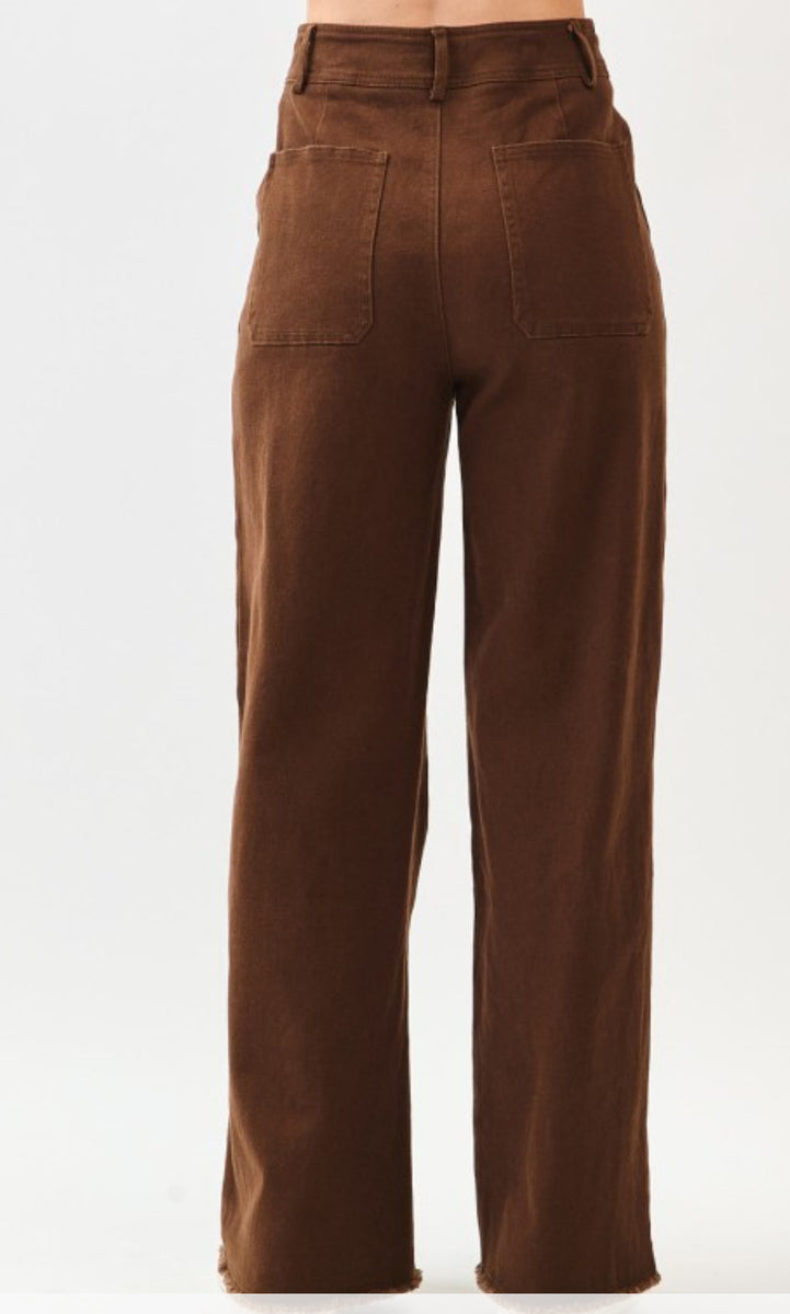 These chocolate brown trousers provide a soft and stretchy fit, making them comfortable to wear all day.