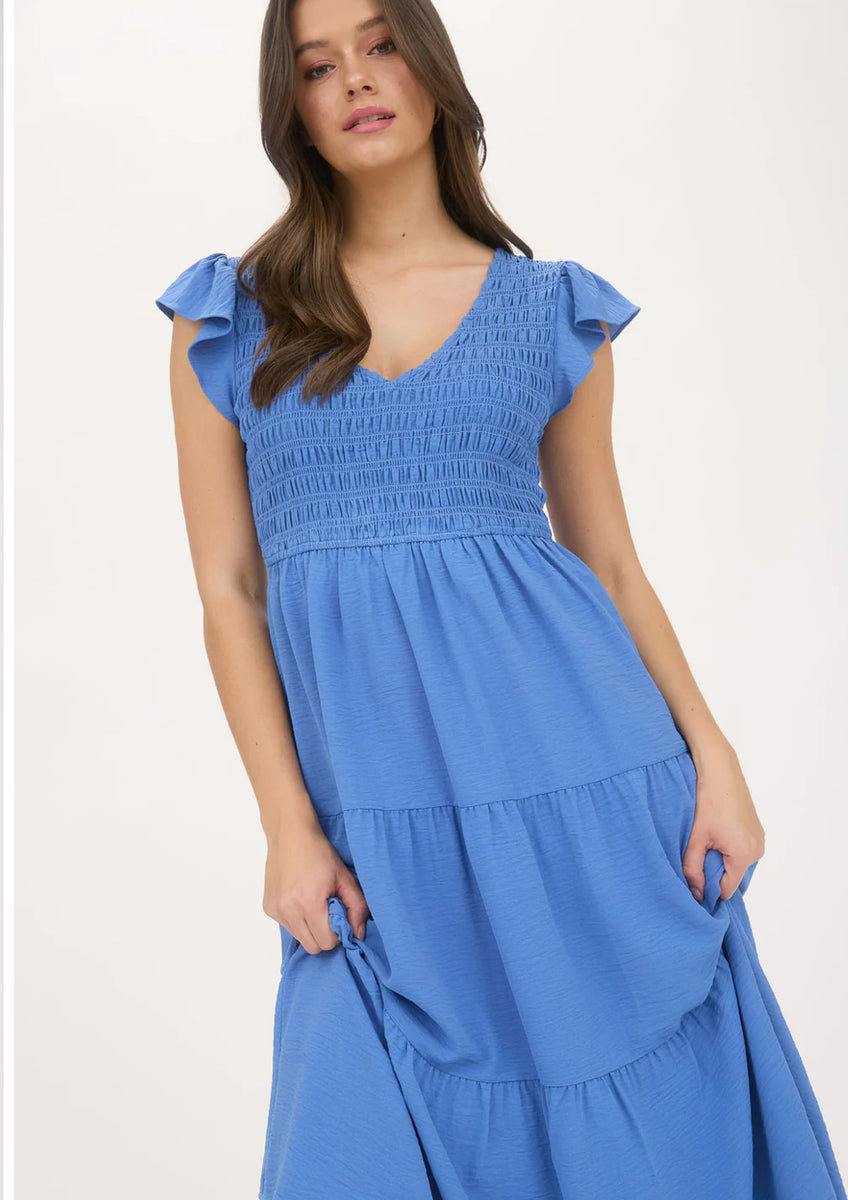 Stay cool and stylish in our 2179 blue tiered maxi dress. With a flattering fit that stays true to size, this dress is perfect for any occasion. Step out in confidence and comfort with this unique and playful piece.