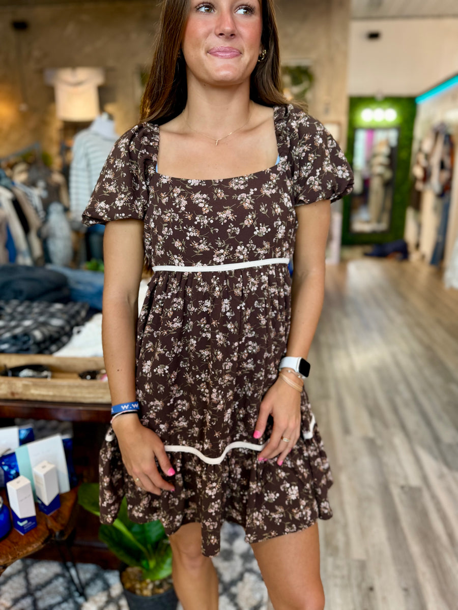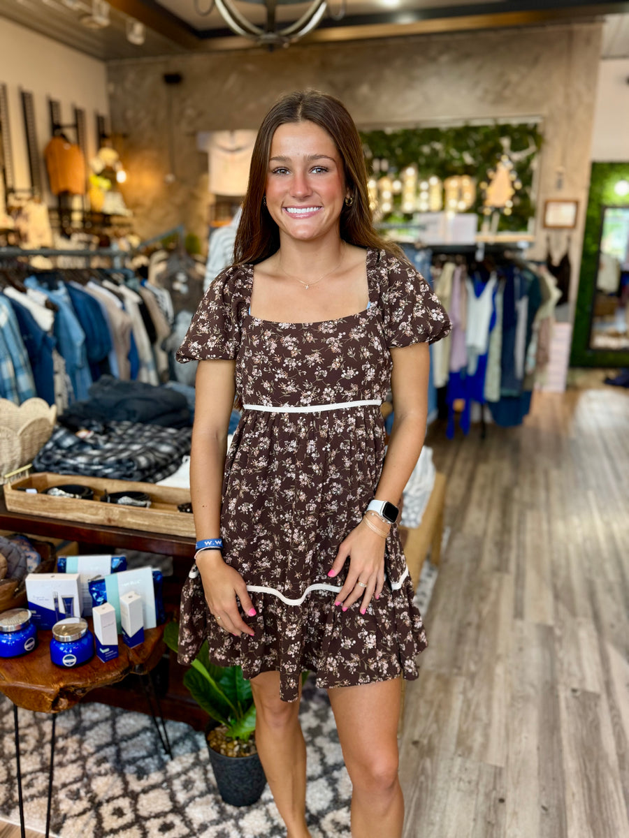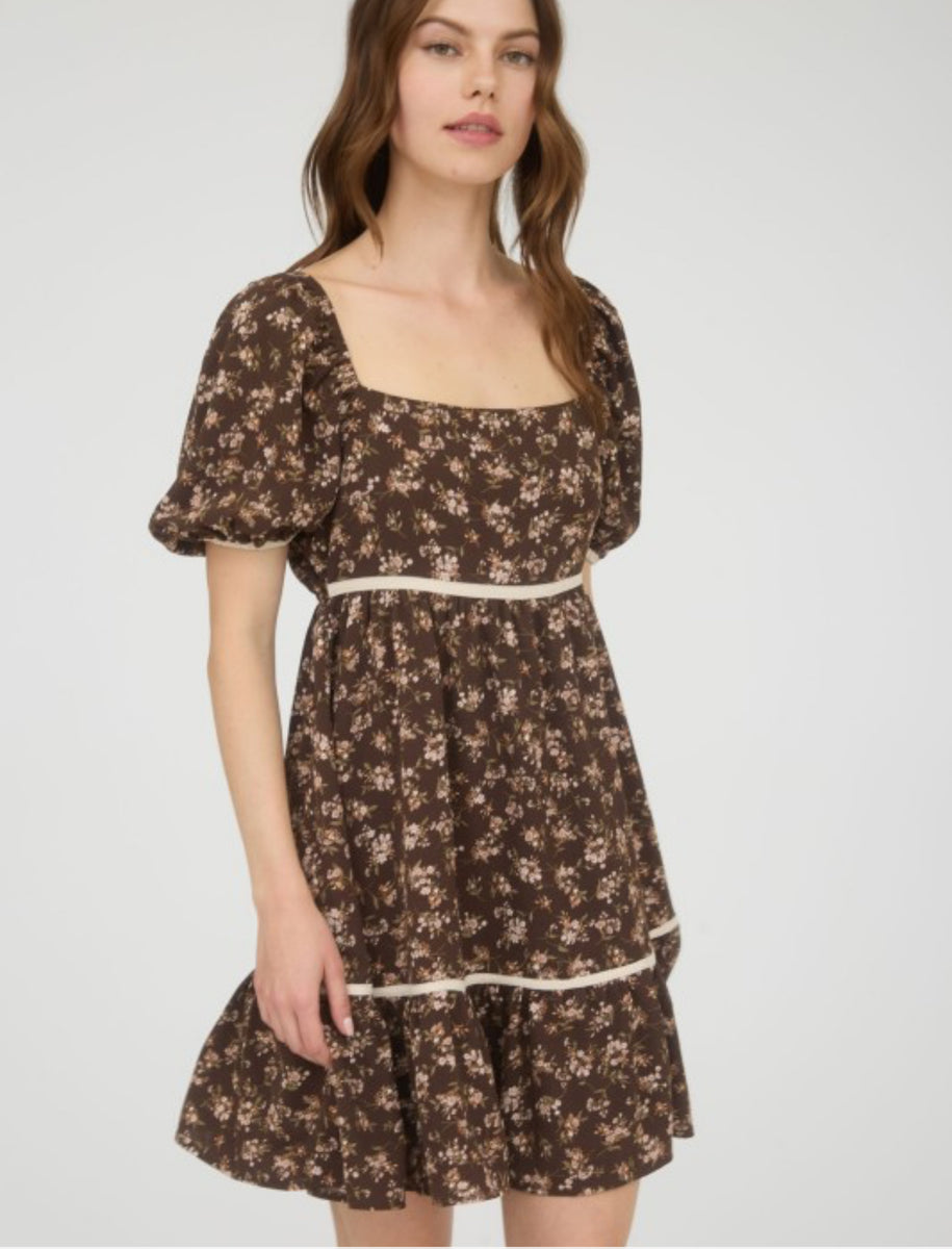 This brown floral dress is a perfect choice for any occasion. Its elegant design and high-quality fabric will make you stand out in the crowd. Stay stylish and comfortable with this must-have piece in your wardrobe.