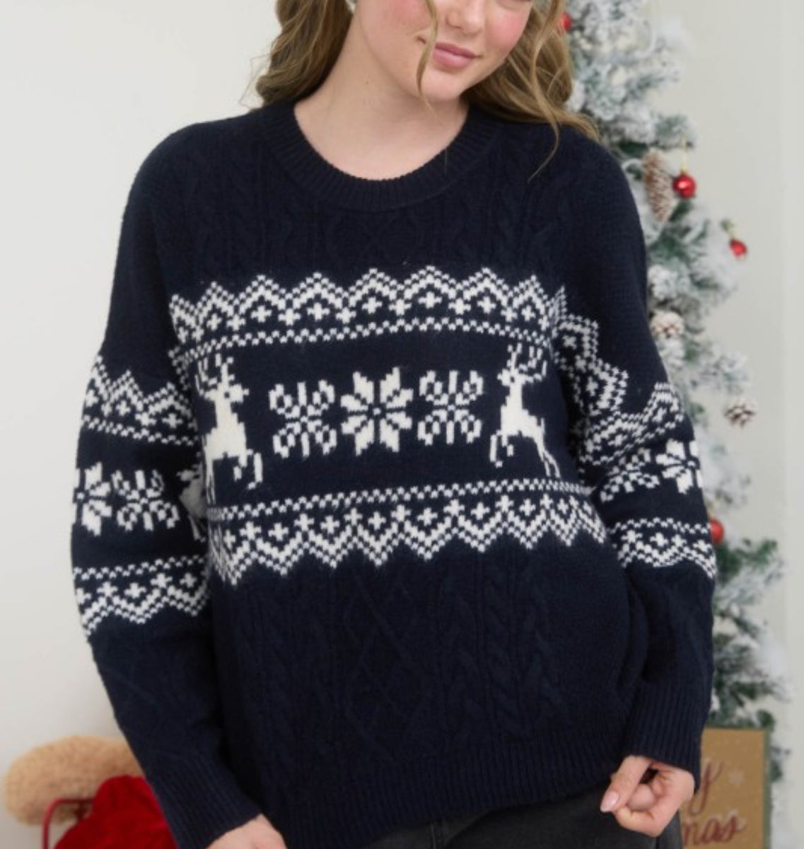 Stay cozy and stylish this holiday season with our Navy Blue Christmas Pullover Sweater. Made with high-quality materials, this sweater is designed to provide a comfortable and true-to-size fit. Perfect for any festive occasion, this sweater is a must-have for your wardrobe.