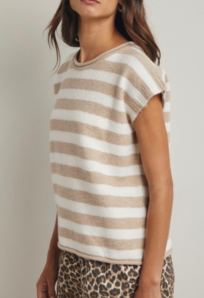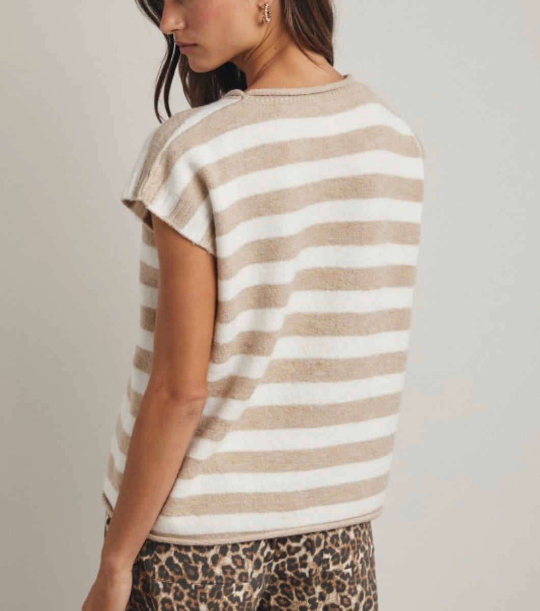 Elevate your wardrobe with the 12109 sweater, featuring a stylish ivory and tan stripe design. Perfect for layering, this cozy piece offers both comfort and a chic look, making it a versatile choice for any occasion.