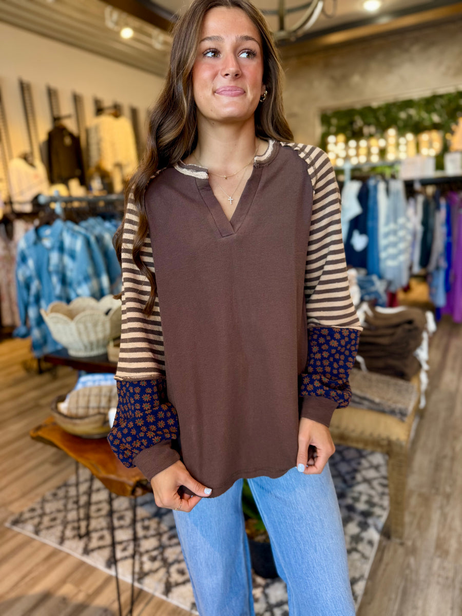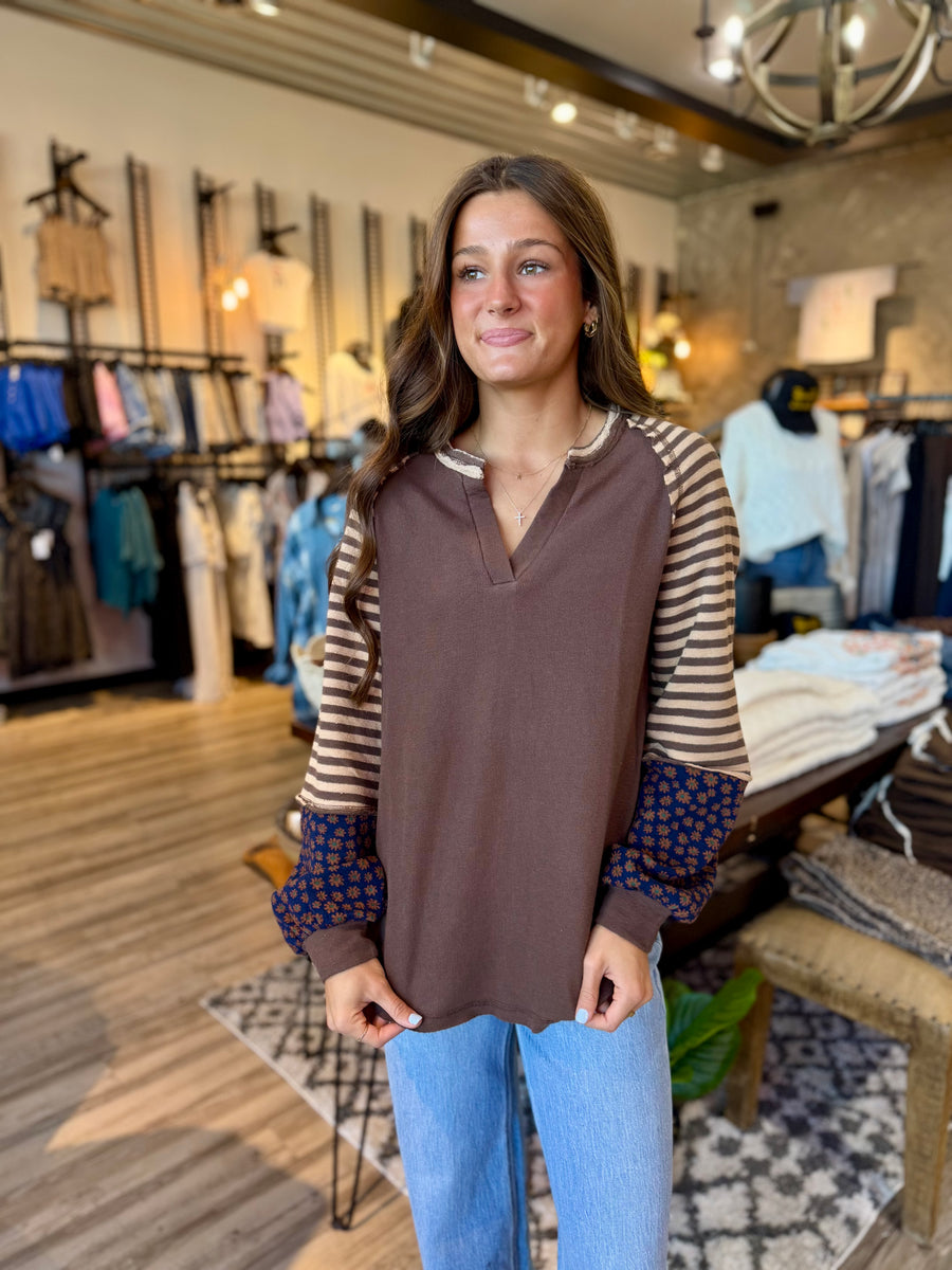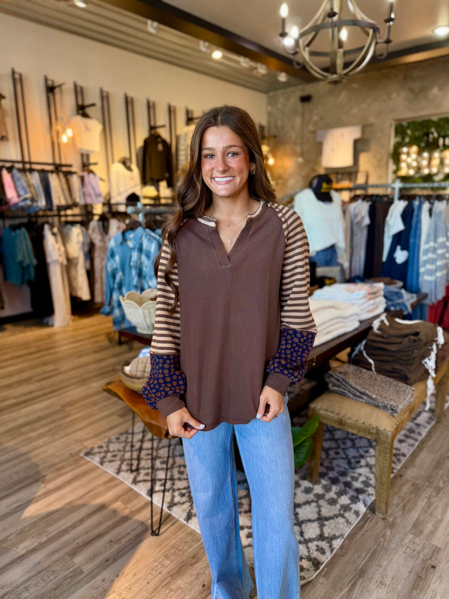 Get ready to elevate your wardrobe with our Mocha and Stripe Long Sleeve Top. Perfect for any occasion, this top features a stylish and versatile design with its mocha and stripe print, making it a must-have for your closet. Stay comfy and chic all day long.