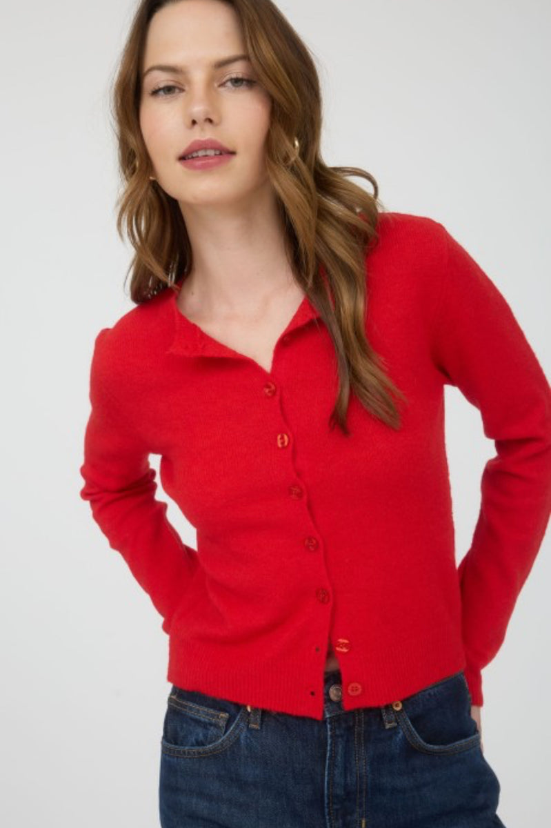 Effortlessly stylish and versatile, our Bright Red Button Down Cardigan is a must-have addition to your wardrobe. The classic design and true-to-size fit make it a staple piece for any outfit. Stay cozy and chic with this essential.