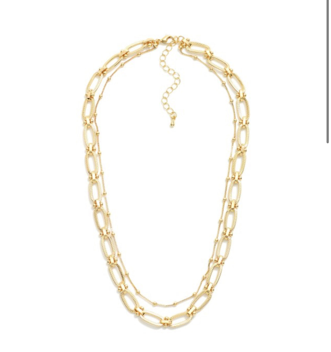 Layered Box Chain & Textured Metal Link Chain Link Necklace