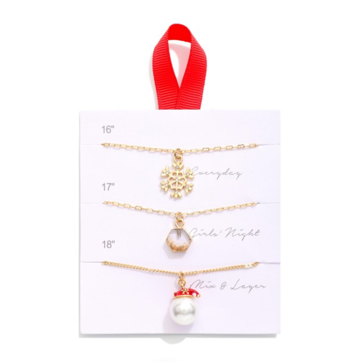 Set Of Three Chain Link Christmas Pendant Necklaces Featuring Rhinestone, Pearl And Enamel Detailing