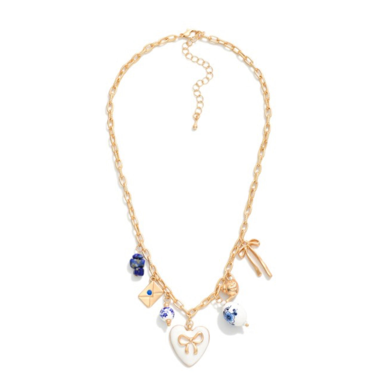 Chain Link Necklace Featuring Metal Tones & Porcelain Charms - Approximately 16" L- Extender 3" L