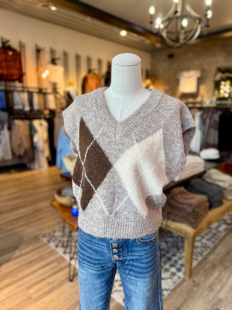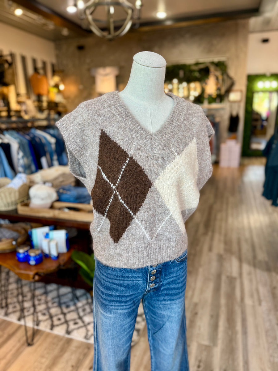Stay comfortable and stylish with our 1920 taupe argyle v neck sweater. Made from high-quality materials, this classic sweater will keep you warm while adding a touch of sophistication to your wardrobe. Perfect for any occasion, it's a must-have for any fashion-forward individual.