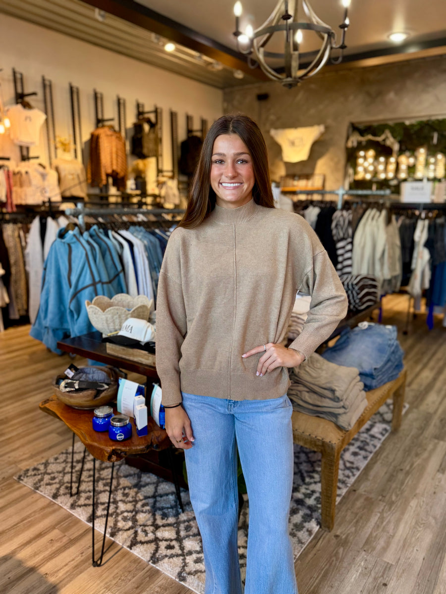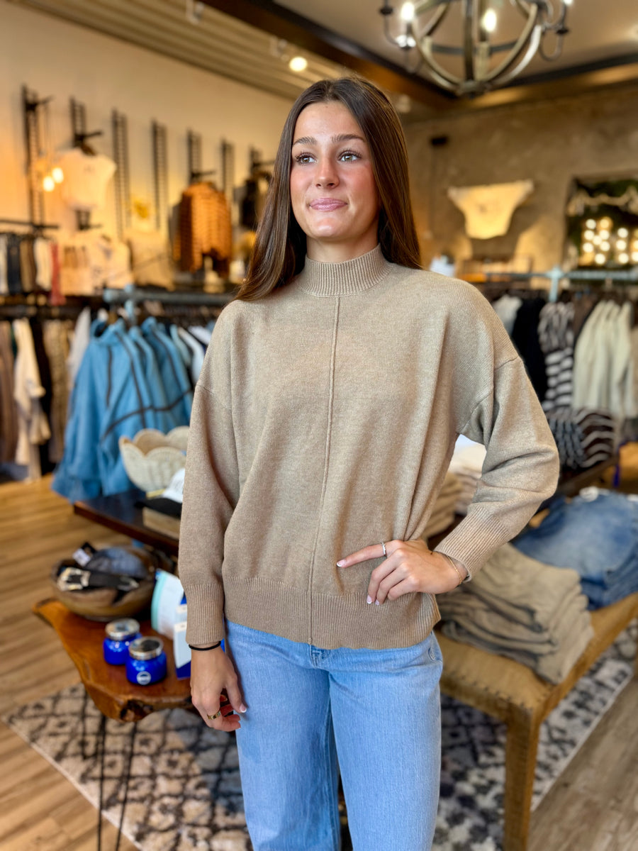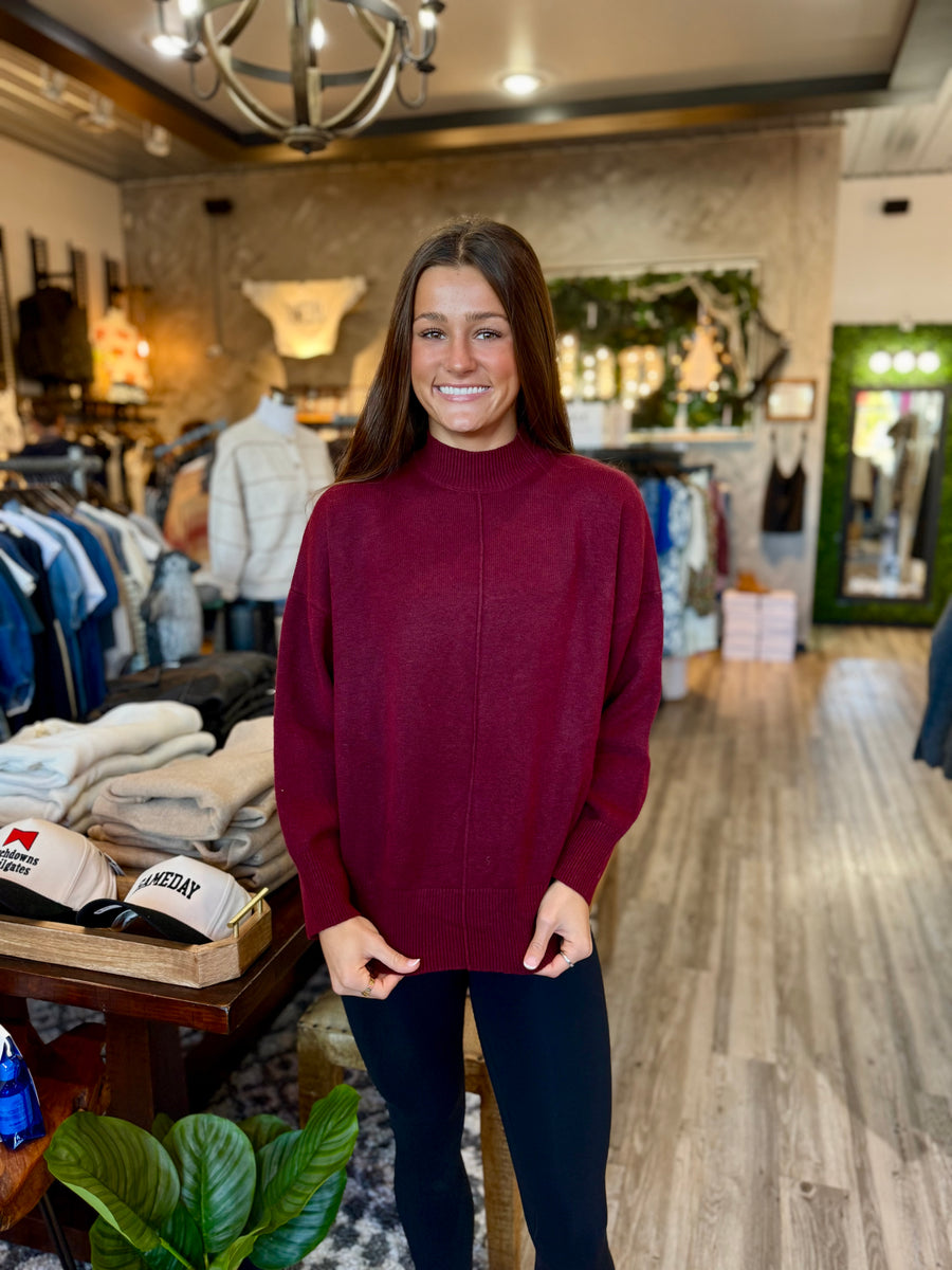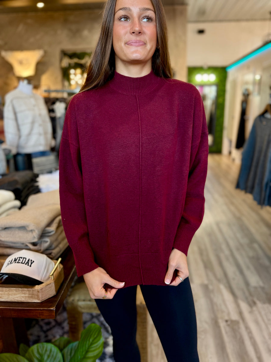 This sweater is a basic, yet stylish choice for your wardrobe. With a gray, burgundy, and tan design, it's versatile and easy to pair with any outfit. The mock neck adds a touch of sophistication and warmth, perfect for cooler weather. Stay cozy and fashionable with the 1960 sweater.