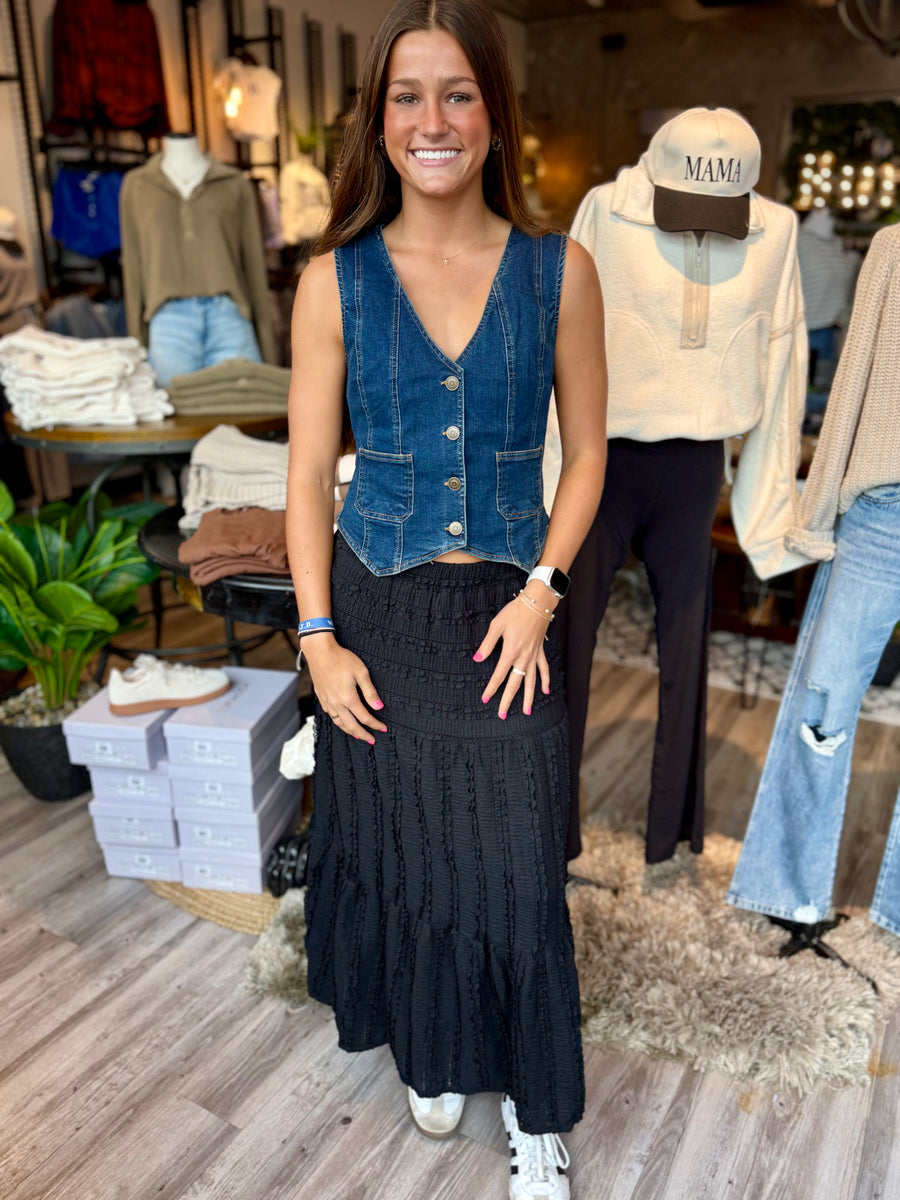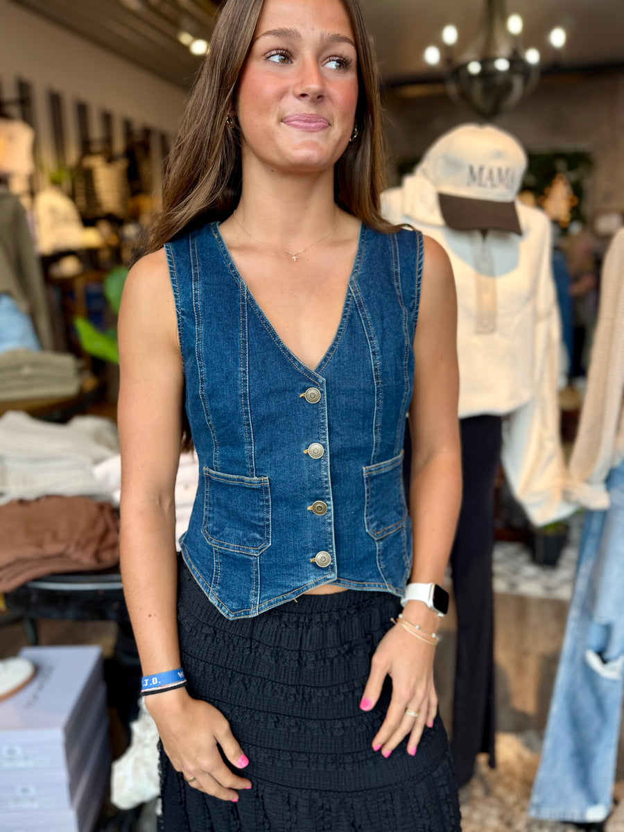 Introducing our denim button down vest. The perfect addition to any outfit, this vest is made with durable denim fabric and features a classic button down design. Stay stylish and comfortable all day long.