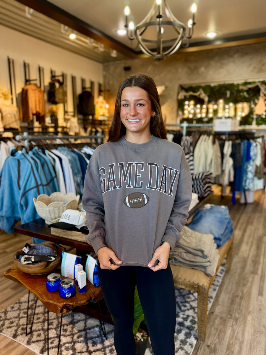 Stay warm and show off your love for football with our 2129 crew neck sweatshirt. Designed with a football graphic, this sweatshirt fits true to size and promises comfort. Stay cozy and stylish on game day with our 2129 sweatshirt.