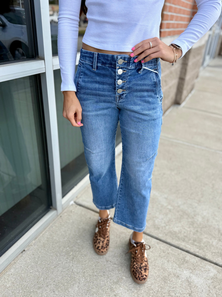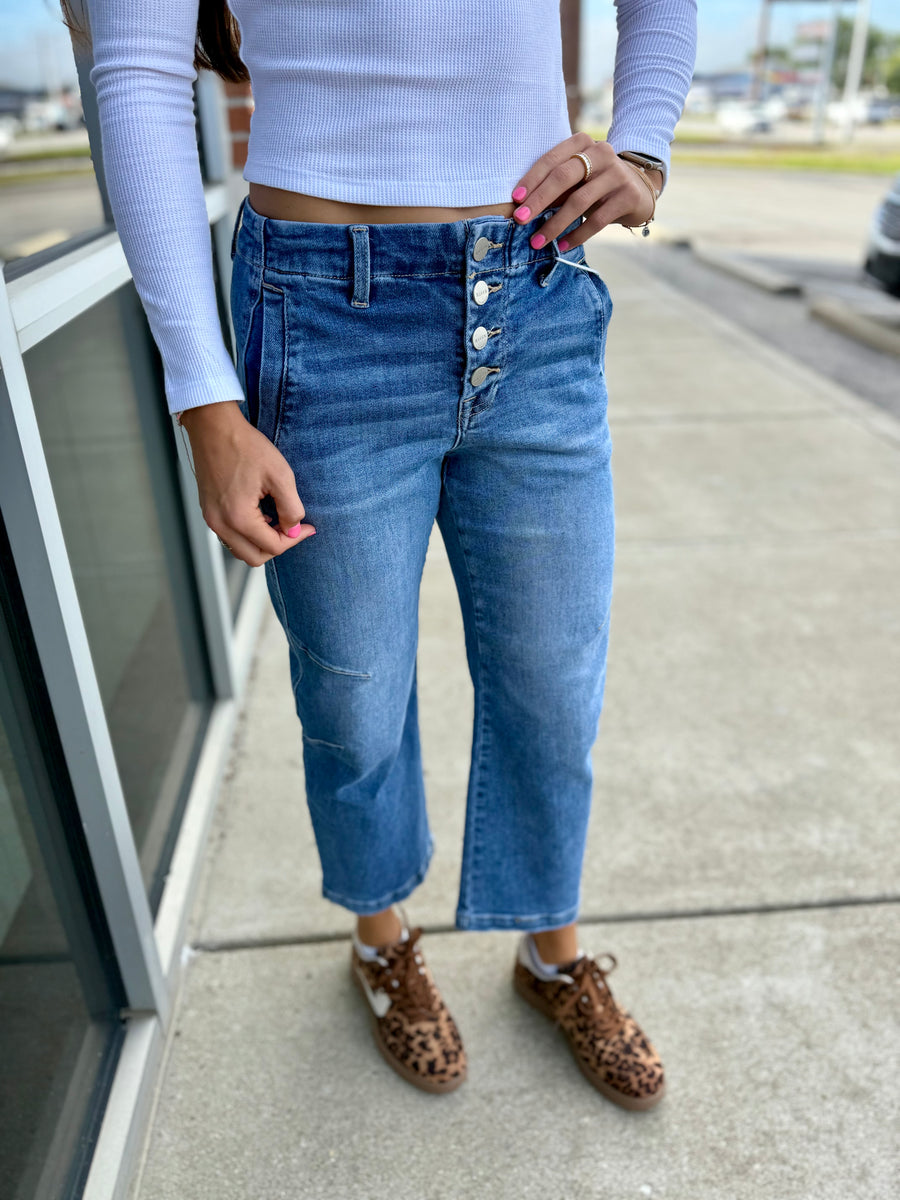 Elevate your style game with Risen jeans. These mid rise crop jeans feature a 10.5" rise and a 26" inseam, perfect for showing off your favorite footwear. Comfortable and trendy, these jeans are a must-have addition to your wardrobe.