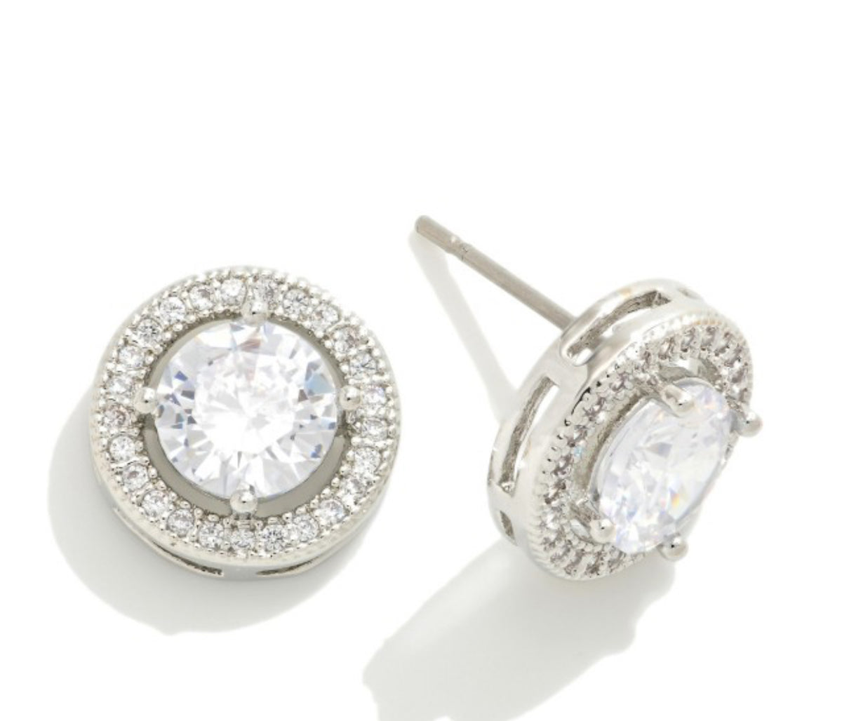 Circular Stud Earrings Featuring Round Stone With Pave Accent