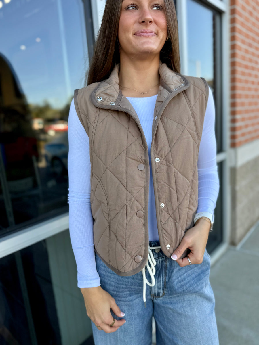 Add the perfect finishing touch to your outfit with our 2726 Tan Quilted Snap Button Vest. Keep warm and stylish with this versatile piece that can be dressed up or down. The snap button closure adds convenience and the quilted design adds a touch of sophistication.