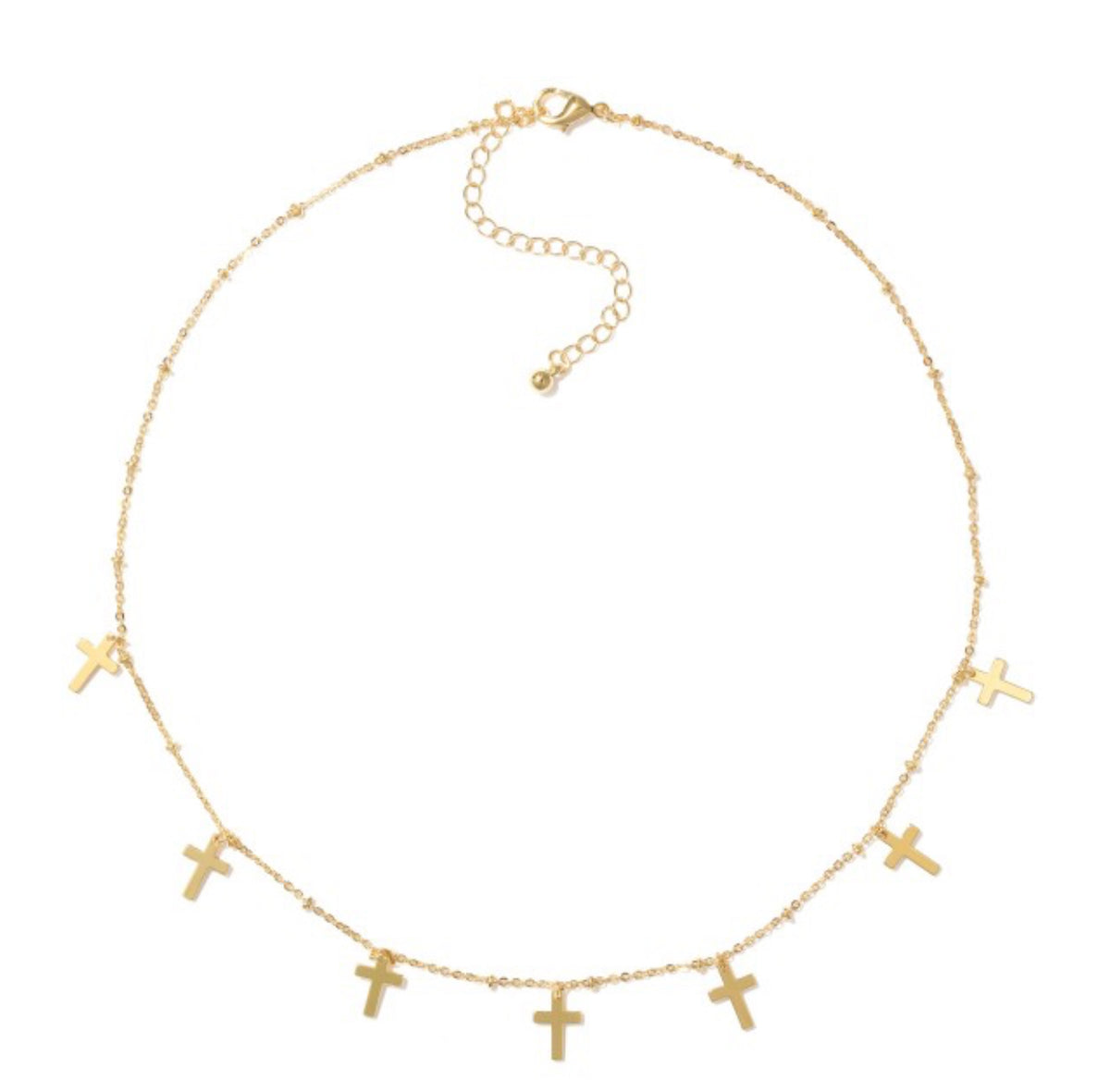 Chain Link Necklace Featuring Metal Tone Cross Charms