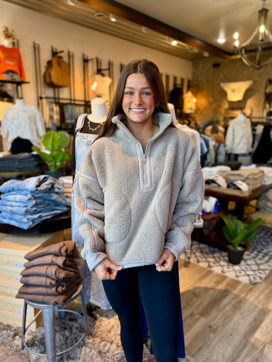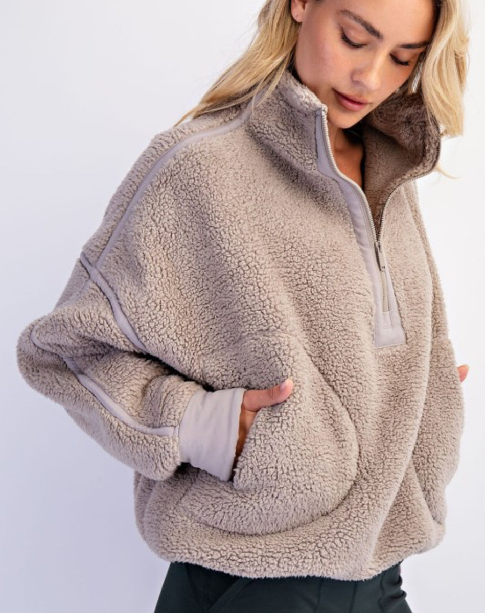 With its unique stone color, this half-zip pullover offers a trendy twist on the classic design. Perfect for layering and staying warm, it's a versatile option for any wardrobe. Plus, it's a budget-friendly alternative to the popular Free People brand. Upgrade your style with the 3134 pullover.