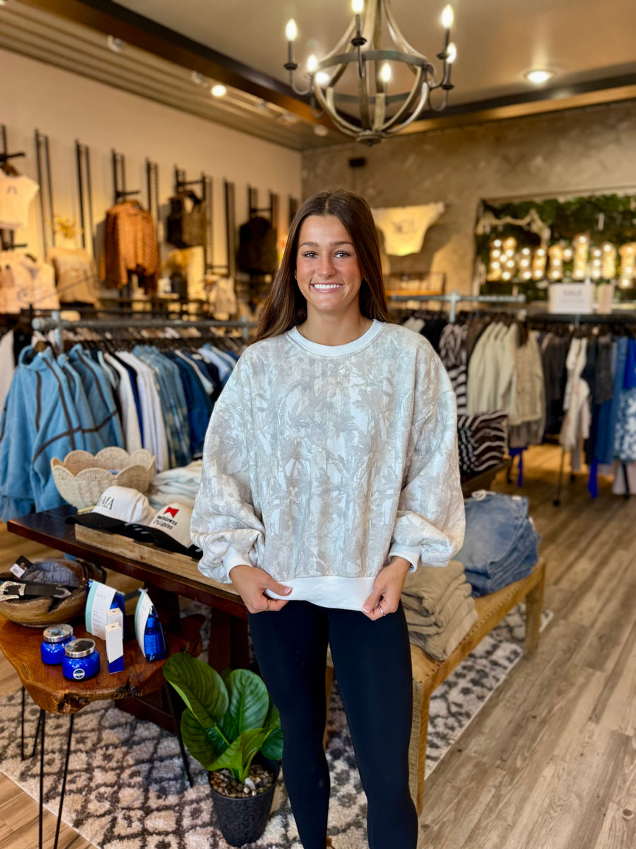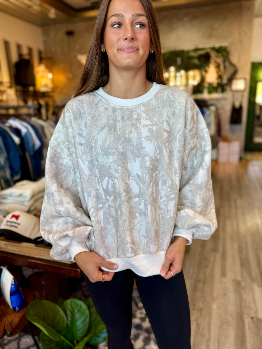 Stay comfortably stylish in our Relaxed Oversized Camo Crewneck. The loose fit and classic camo print provide effortless coolness while keeping you comfortable all day. Perfect for any casual occasion!