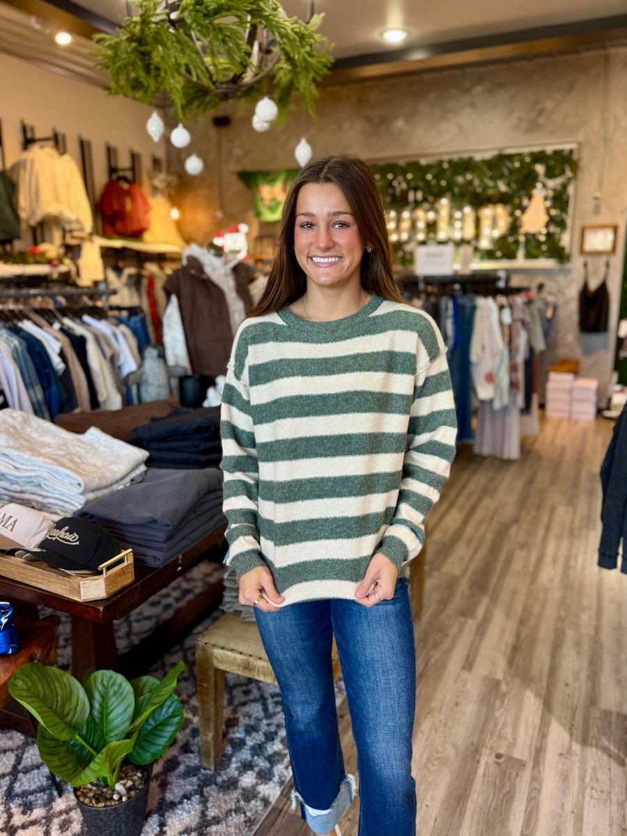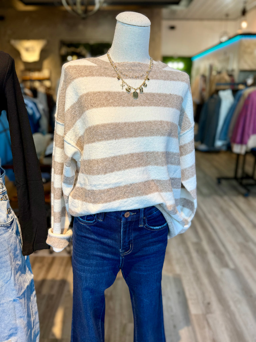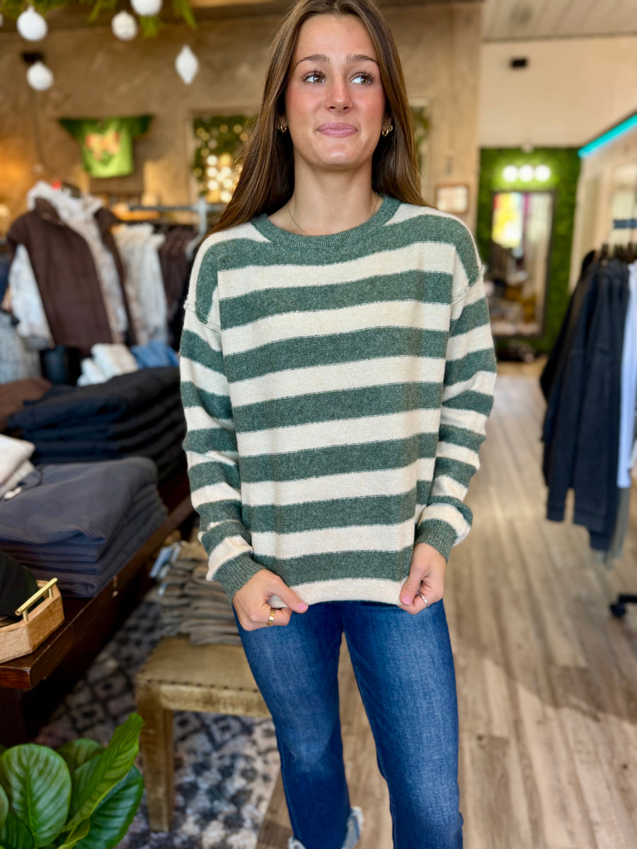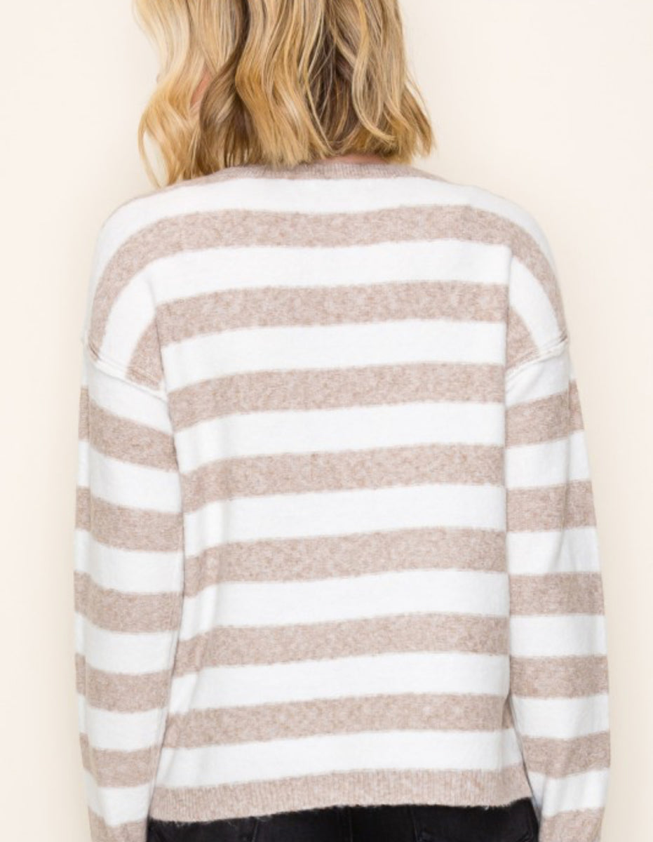 Stay cozy and stylish with our 55300 pullover sweater, now available in blue, gray, or tan stripe. Perfect for any occasion, this sweater will keep you warm and looking great.