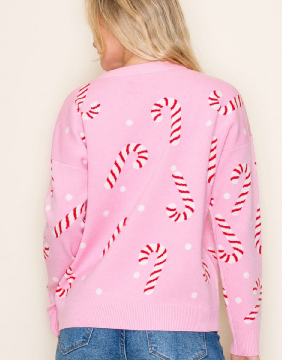 This pink candy cane pullover sweater is a cozy and stylish addition to your winter wardrobe. Made with soft material and adorned with a festive candy cane design, it's perfect for staying warm and spreading holiday cheer.