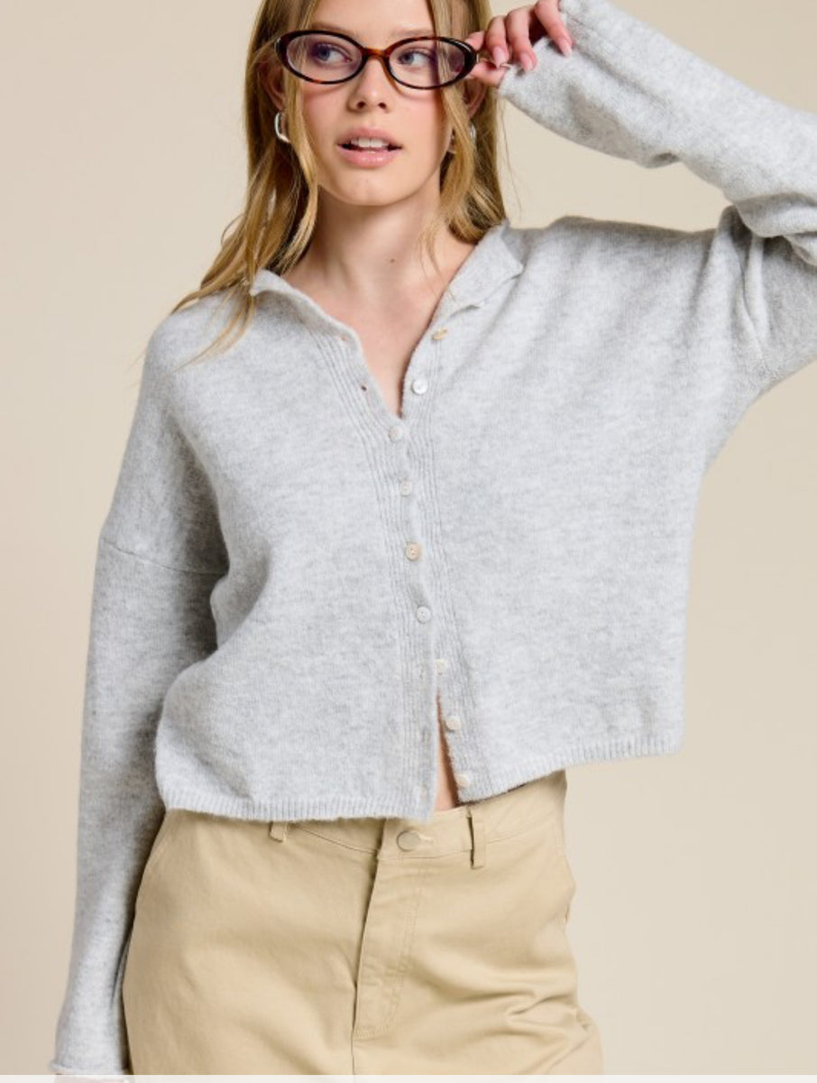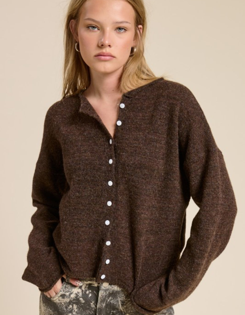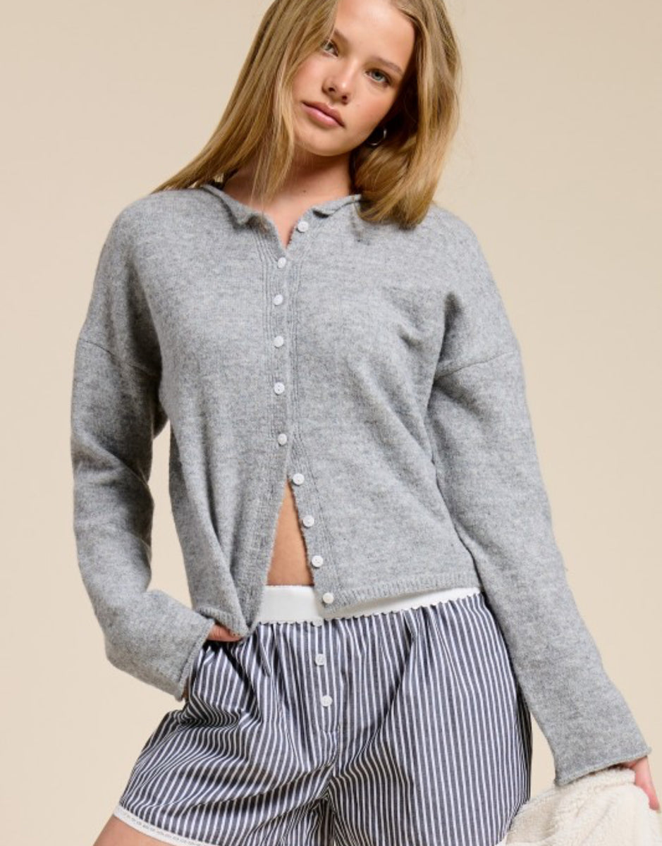 Upgrade your wardrobe with our button down cardigan. This versatile piece is perfect for any occasion, offering a relaxed fit for ultimate comfort. The button up design adds a touch of sophistication, making it a must-have for your closet. Elevate your style effortlessly with our 7091 cardigan.