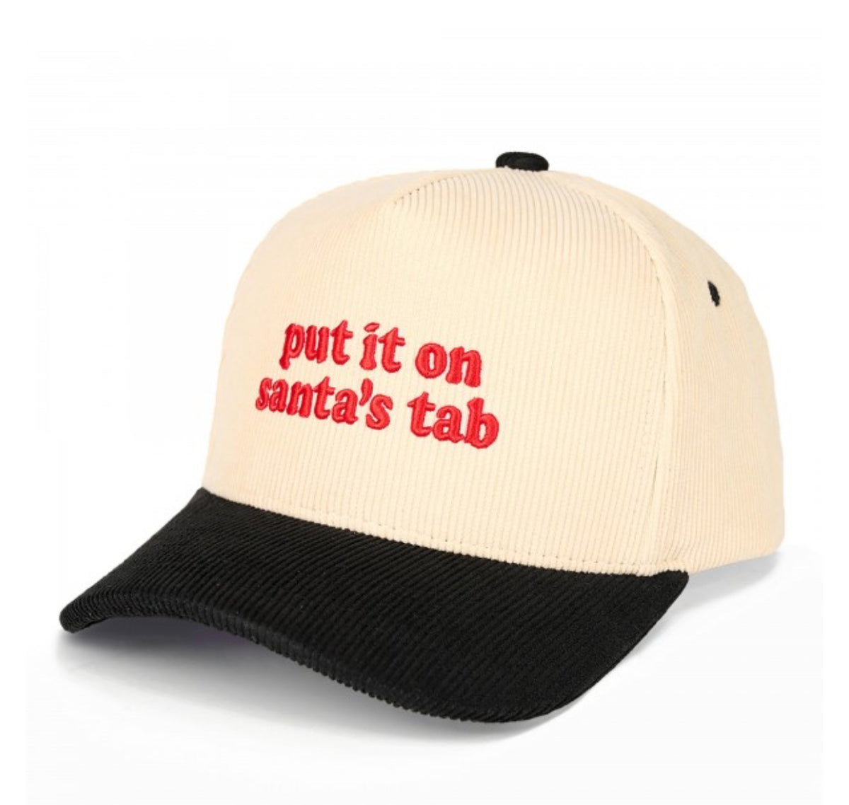 Two Tone Corduroy Embroidered "put it on santa's tab" Baseball Cap